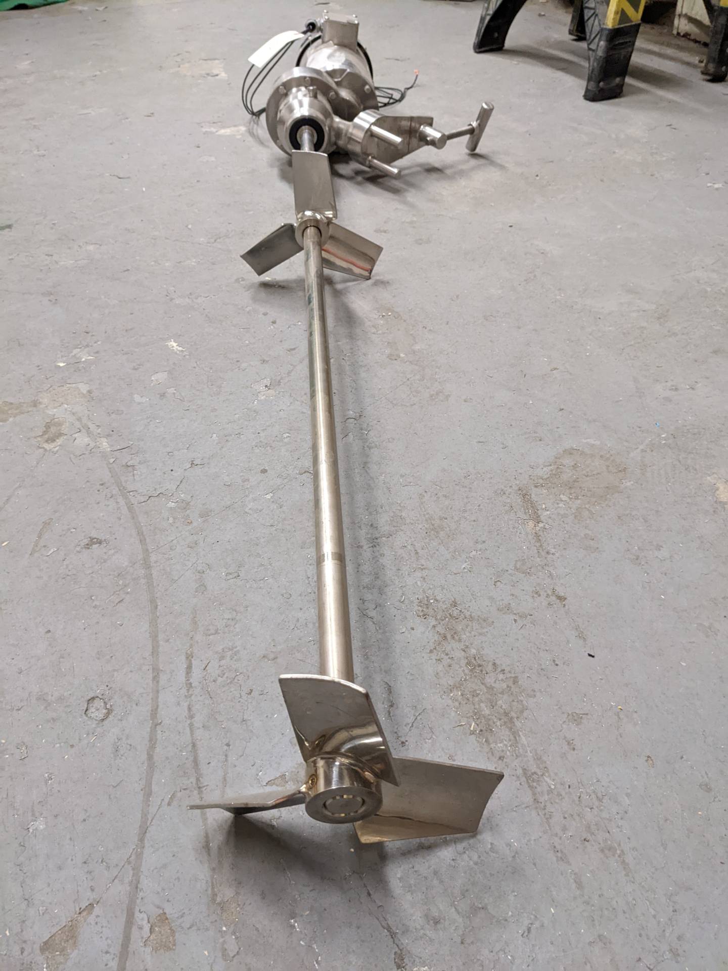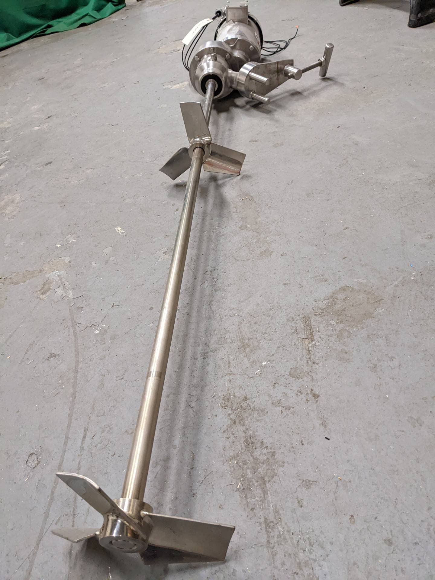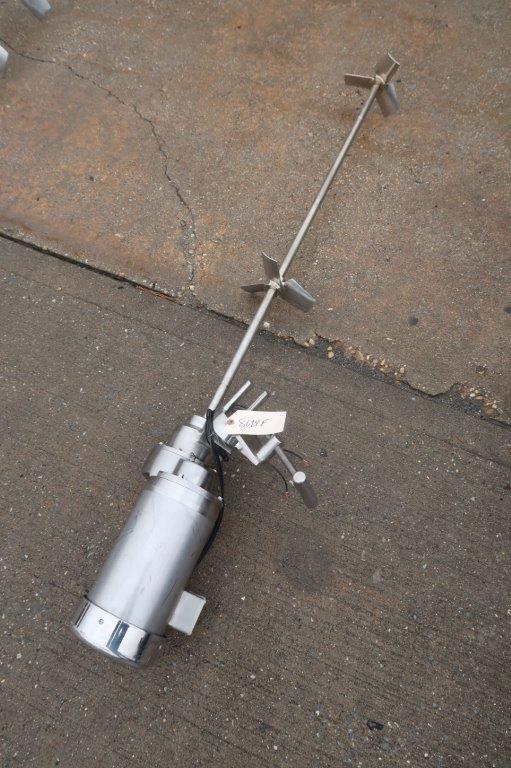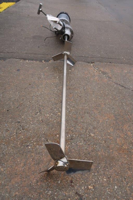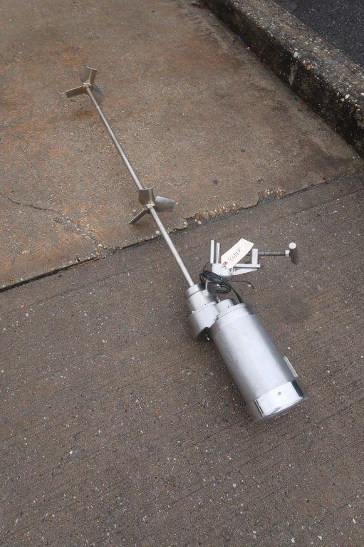 1 – Used Admix 2 HP All Stainless Steel Portable Clamp-On Agitator/Mixer, Model 80RXGC-150, S/N 05222. Equipped with approx. 15/16 In. diameter stainless steel shaft measuring 52 In. long, with 10 In. wide and 9 In. wide pitched bladed heads, respectively. Clamp-on mechanism is also stainless and mixer is driven by 2 HP 3/60/208-230/460 volt stainless steel washdown motor. Last used in mixing liquid vitamins (Stock # 8614F)