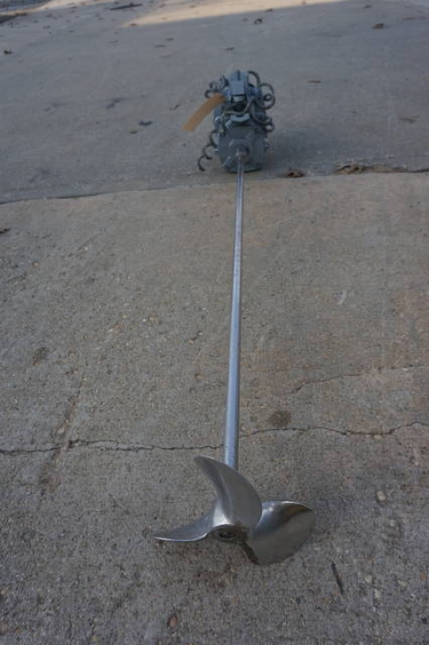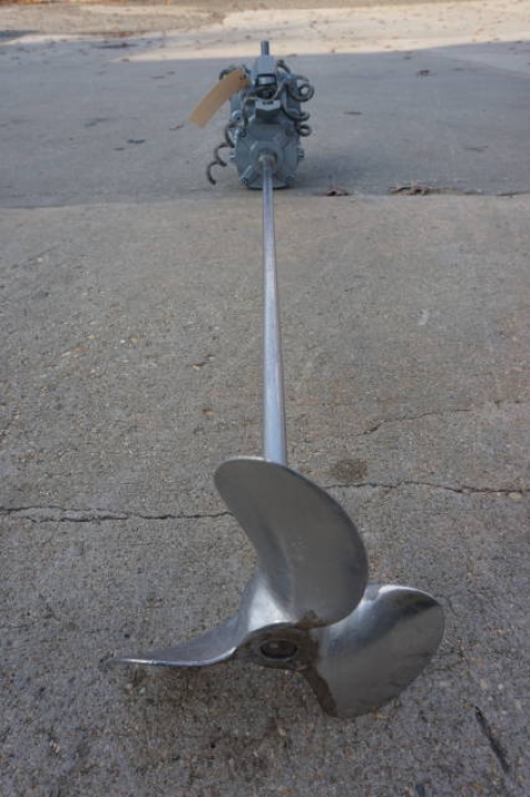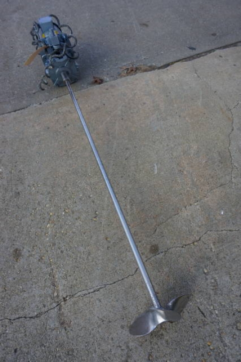 1-Used Chemineer 1/2 HP Clamp On Portable Agitator.   Equipped with 49 In. long stainless steel shaft with 8 In. diameter stainless steel propeller, mixer is driven by 1/2 HP, 3/60/230/460 Volt Motor.  (Stock #8246F)