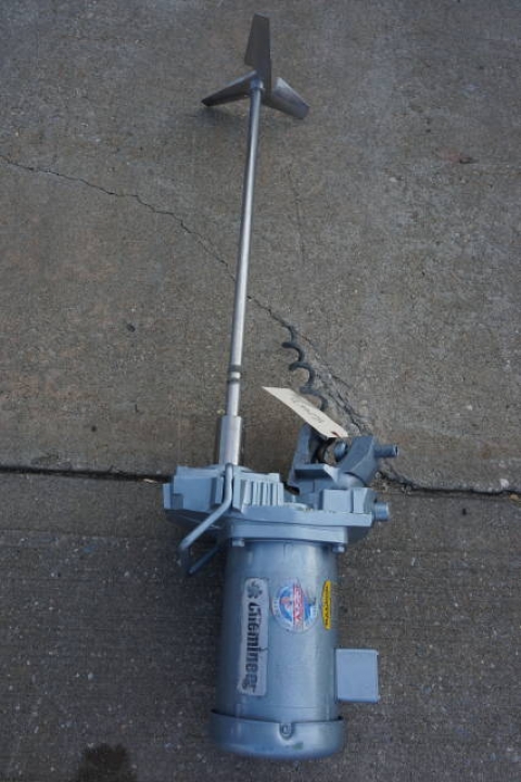 1-Used Chemineer 1HP Clamp On Portable Agitator. Equipped with approx. 38 In. long stainless steel shaft and pitched turbine blade, unit is driven by 1 HP, 3/60/208-230/460 Volt motor. (Stock #8246D)