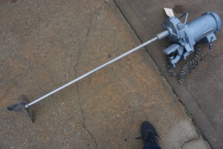 1-Used Chemineer 1 HP Clamp On portable Mixer. With approx. 54 In. stainless steel shaft and 10 In. Wide pitched bladed head, mixer is driven by 1 HP, 3/60/208-230/460 Volt Motor. (Stock #8246H)
