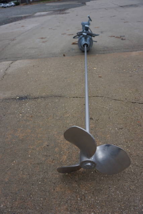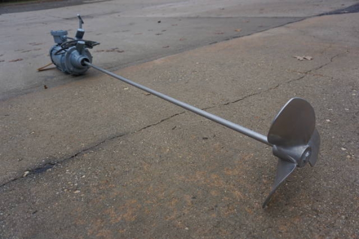 1-Used Chemineer 1 HP Clamp On Explosion Proof Portable Mixer. With approx. 53 In. long stainless steel shaft with 8 In. diameter stainless steel prop, mixer is driven by 1 HP, 3/60/208-230/460 Volt explosion proof motor. (Stock #8246G)