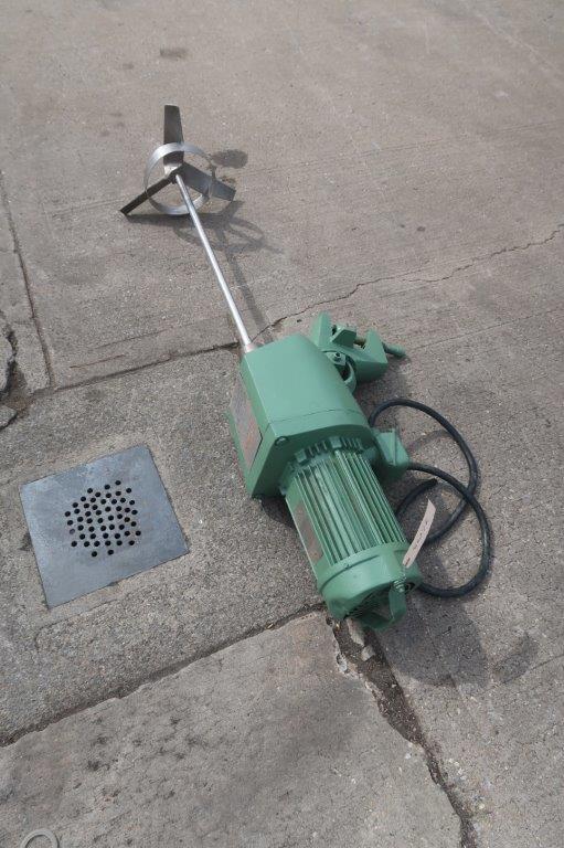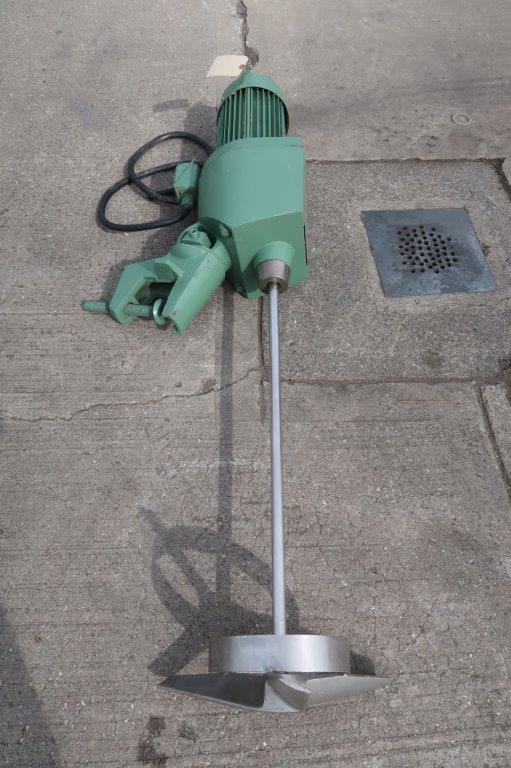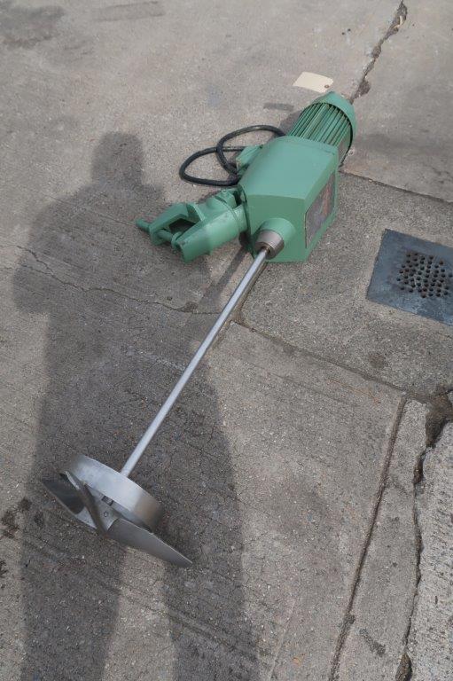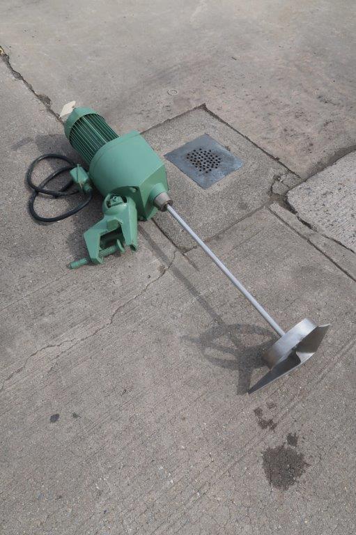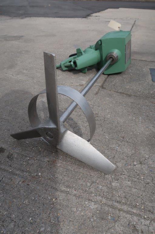 1-Used Lightnin Model XJ-230 Clamp On Portable Geared Down Agitator, Serial Number 85/261761.  Equipped with approximately 36 In. Long stainless steel shaft with approximately 17 In. Wide pitched bladed agitator, with stabilizing ring . Driven by 2.30 HP 3/50-60/208-220/440 Volt motor. (Stock #8627K)