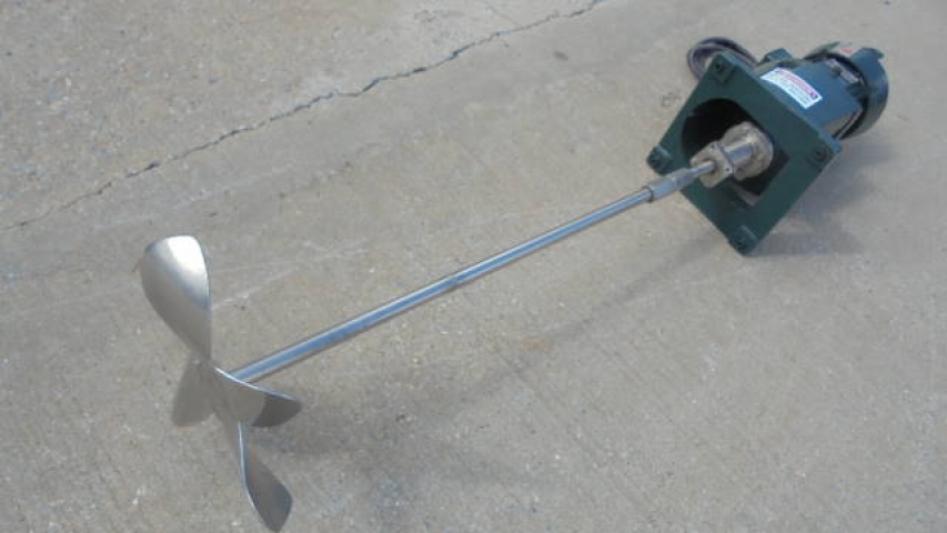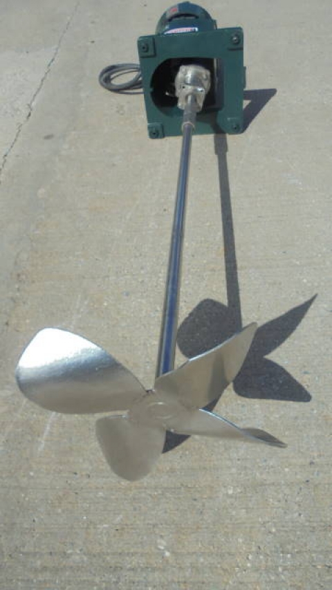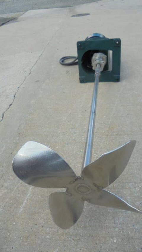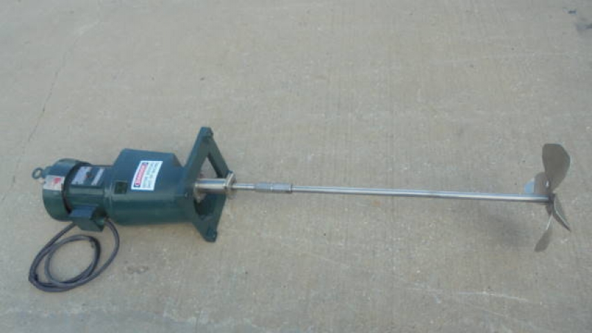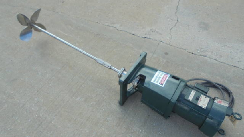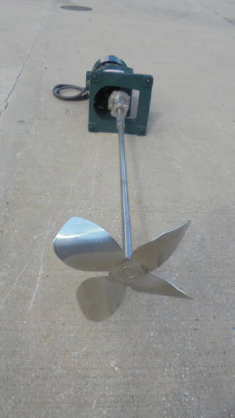 1-Used Lightnin 2HP Fixed Mount Agitator Drive, Model NLDG-200, S/N 7701372. Driven by 2HP 3 phase, 60 cycle motor (can be converted to Explosion Proof operation, if required). With approximately 42 In. long stainless steel shaft with 14 In. diameter blade. (Stock# 8234C)