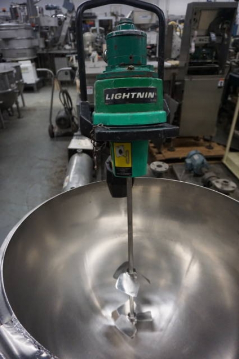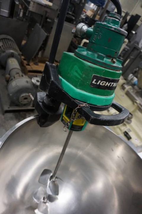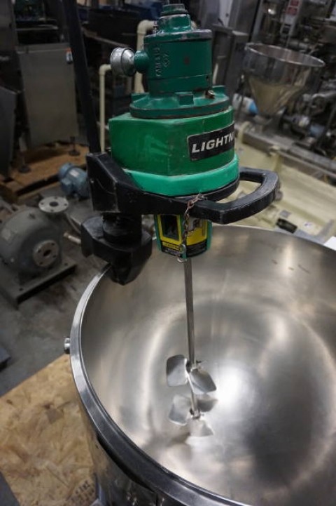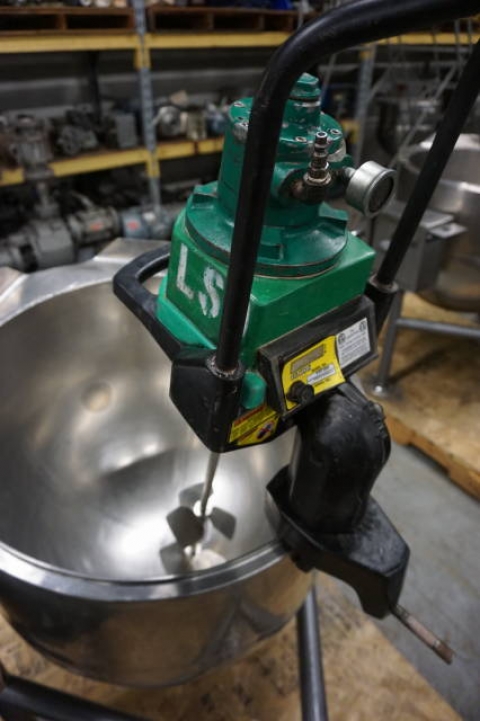 1-Used Lightnin Model V5P-18N Clamp-On Air Operated Mixer, S/N R9870092800501.  Equipped with 26 In. Long stainless steel shaft with dual mixers.  (Kettle shown in photos available at an additional cost. (Stock #8064ii)