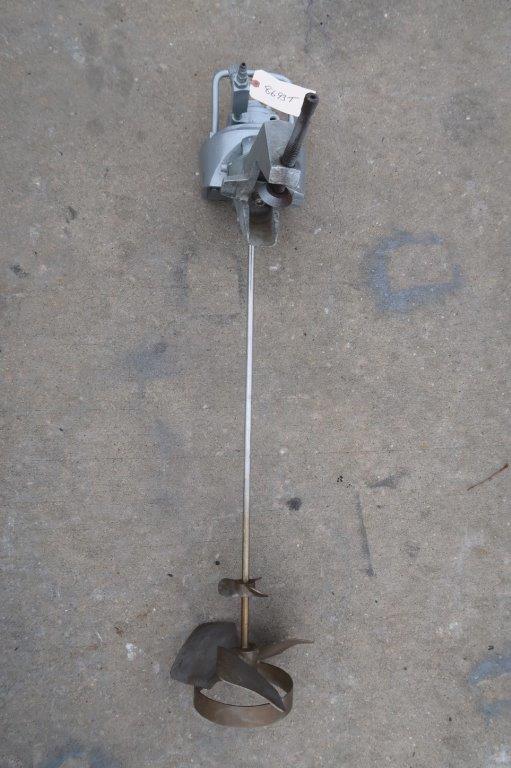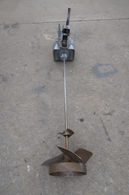 1-Used Lightnin Model XLA-33 Air Operated Clamp-On Portable Agitator. Equipped with 1/3 HP motor, agitator has 31 In. long stainless steel shaft equipped with 10 In. wide pitched blade, 3 In. diameter propeller and stabilizing ring. (Stock #8693T)