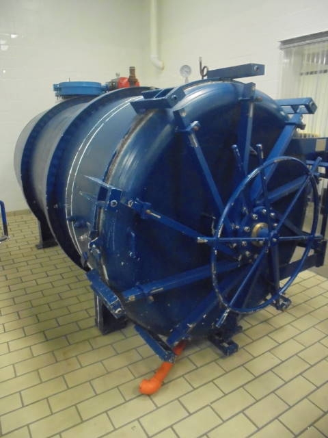 1-Used CMI 5 Ft. Diameter X 11 Ft. Long Horizontal Retort. With quick opening Spider Door, Retort comes equipped with Control Panel with Chart Recorder. Rated 25 PSI @ 240 degrees F, Code Stamped. Last used in food production, machine appears in excellent condition. (Stock #L1276)