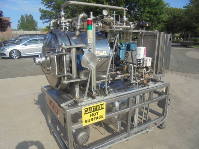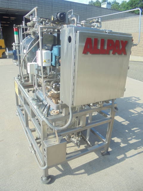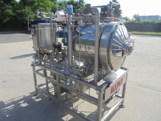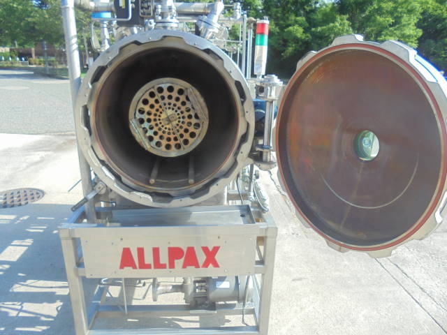 1-Used Allpax Pilot Plant/Lab Programmable Automatic Retort with cylindrical chamber measuring approx. 24 in. diameter X 21 in. deep.  Unit rated maximum working pressure of 70 PSI/full vacuum @ 325 Degrees F., shell (S/N 10193).  With “quick opening”” front hinged door.  Interior chamber rotates via Eurodrive fractional horsepower motor.  Unit being sold in “”as is”” condition and buyer is responsible for any programming or electrical work.  (Stock #8112)