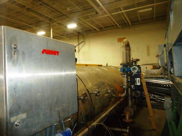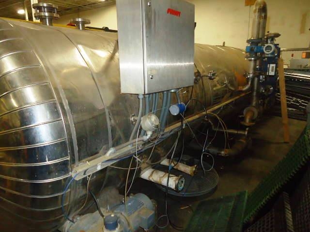 1-Used FMC/Surdry approximately 5 ft. diameter by 20 ft. long retort. Rated maximum working pressure 71.114 PSI at 300 Deg. F., National Board and code stamped. Equipped with heat exchanger and recirculation pump. Last used in food production. (Stock #L1186)