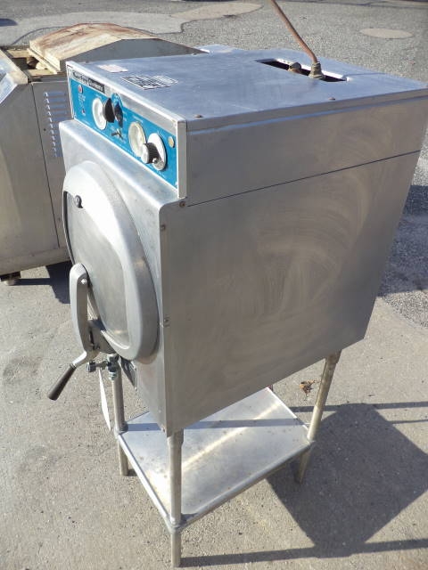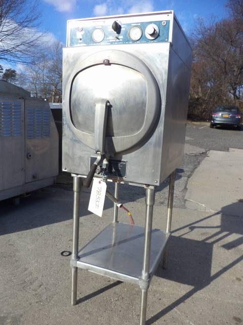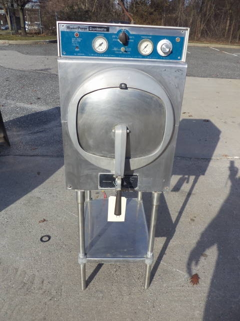 1-Used Market Forge/Sterilmatic Model STM-EL Autoclave/Sterilizer, S/N 1285. This single phase Sterilizer is equipped with temperature control, timer and both pressure and temperature gauges. Electrical specifications: 208-440 volt. On stand, interior measurements approx. 16 in. diameter. (Stock #7853i)