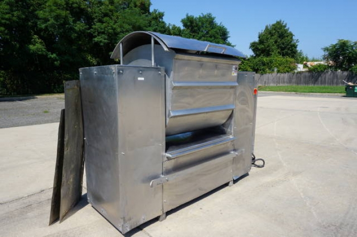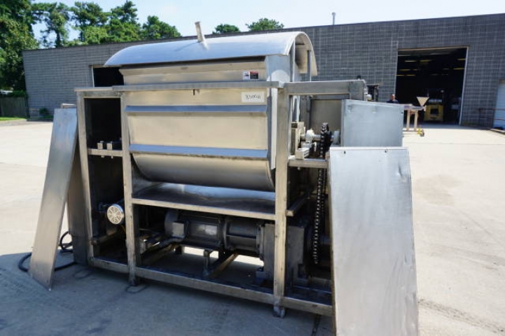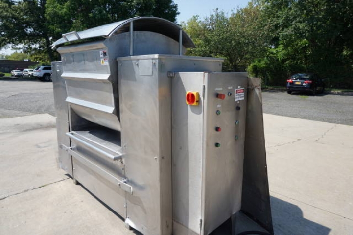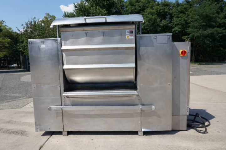 1-Used Ecuamex Equipment Company Stainless Steel Sigma Arm Mixer, Model ECMCT1000, S/N 32401681510. Tank dimensions approx. 40 In. Wide X 38 In. Long X 40 In. deep, this mixer was last mixing a heavy corn “masa” and is driven by 20 HP, 3/60/208 Volt motor. Equipped with 2.5HP accessory motor for the tilt discharge, mixer has stainless steel cabinetry, stainless hinged lid and stainless steel starter box. Equipped with two variable frequency drives, one for mixing arm and one for tilt discharge to allow for variable speed operation. (Stock #8300H)