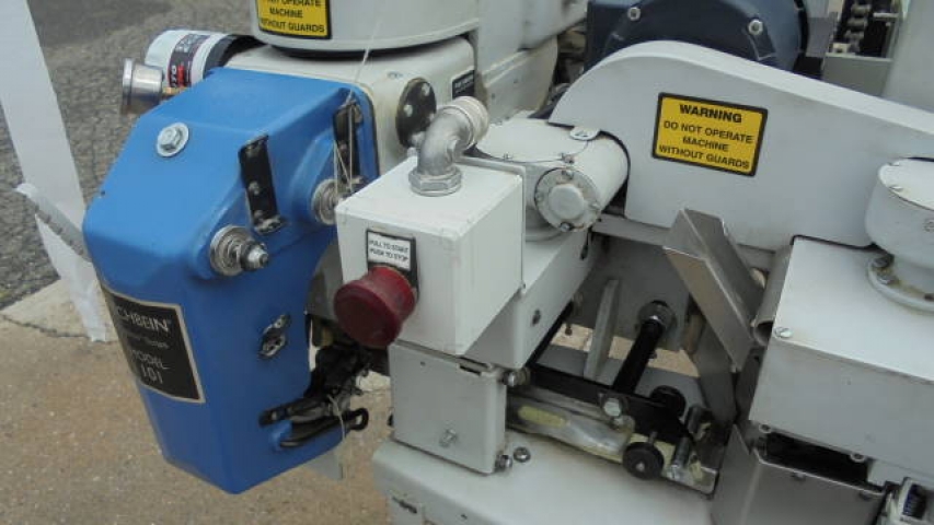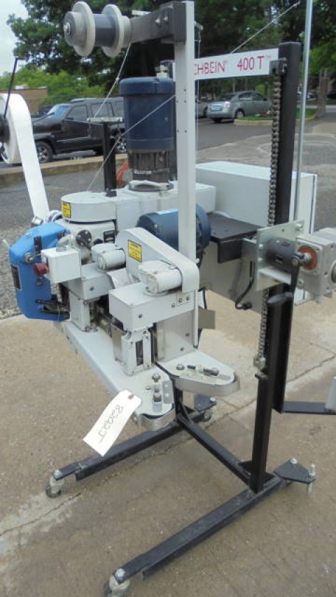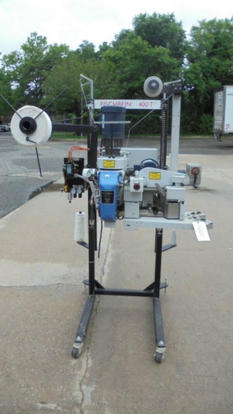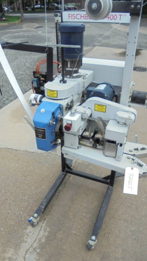 1-Used Fischbein Model 400T Bag Sewing System Model 400T-NSR13BDAB4130H, S/N 12-05-004. Equipped with Model 101 “Empress Series” Sewing Head. Machine capable of up to 55 linear feet per minute. Mounted on portable stand with casters. Electrical specifications: 3/60/230 volt. Last used in food manufacturing facility. (Stock #8202J)