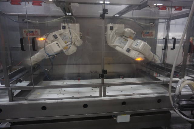 1-Used Hacos Decorobot Automatic Cookie Decorating System. Electrical specificatios 3 phase, 60 cycle, 240 volt. Last photograph below shows sample cookies machine can make. Rated up to 34 cookies per minute on a 4-color design. Additional specifications available upon request. (Stock # L1358)