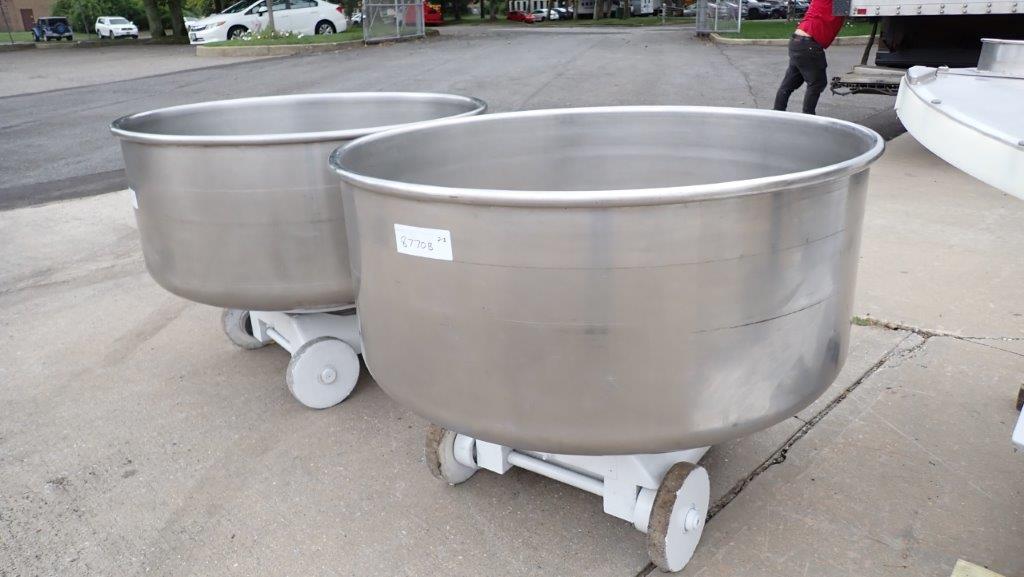1-Used Harvest Spiral Bakery Mixer, Flour Capacity 500 Lb. Dough Capacity 800 Lb.  Equipped with two stainless steel bowls, each measuring 4 Ft. Diameter X 3 Ft. Deep. Last used in the bakery industry. (Stock #8770B)