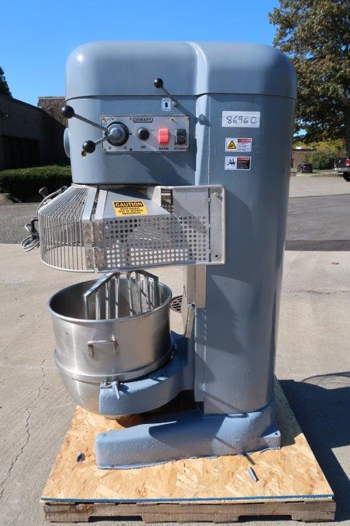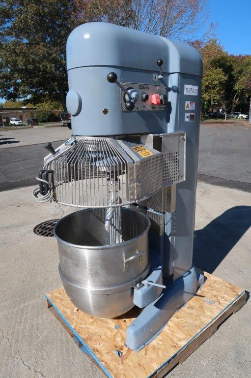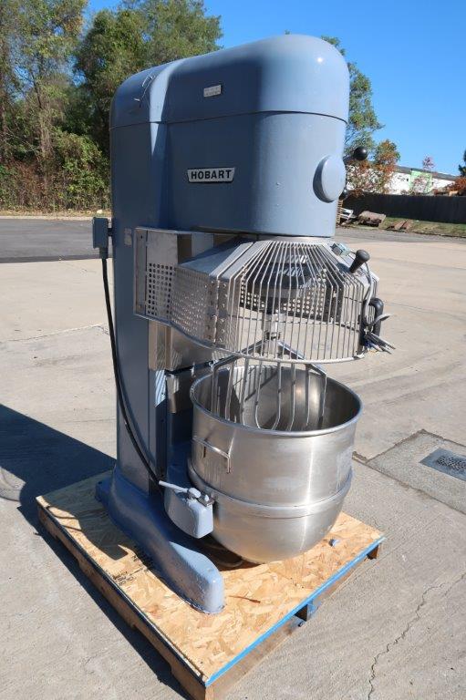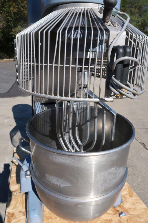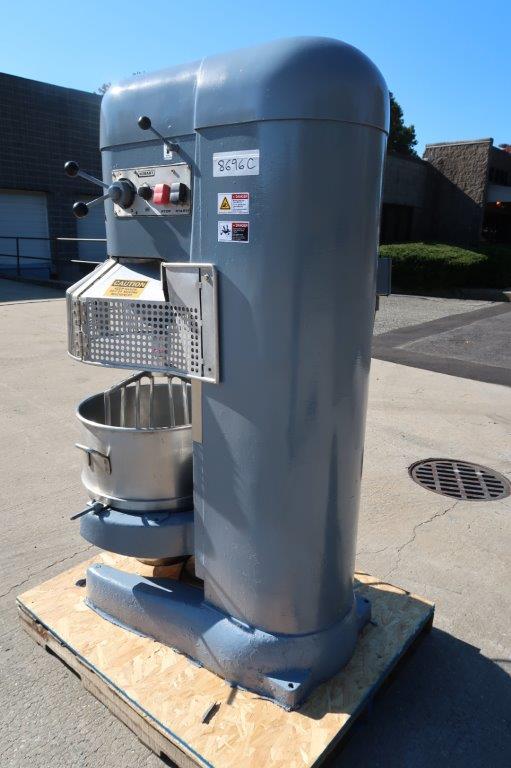 1-Used Hobart Model V1401 140 Quart Bowl Mixer, Serial Number 11-395-930. Equipped with 23 In. diameter stainless steel bowl, and flat beater attachment, this multiple speed mixer is driven by 5 HP, 3 phase, 60 cycle motor. Equipped with a safety cage, mixer last used in the food industry. (Stock #8696C)