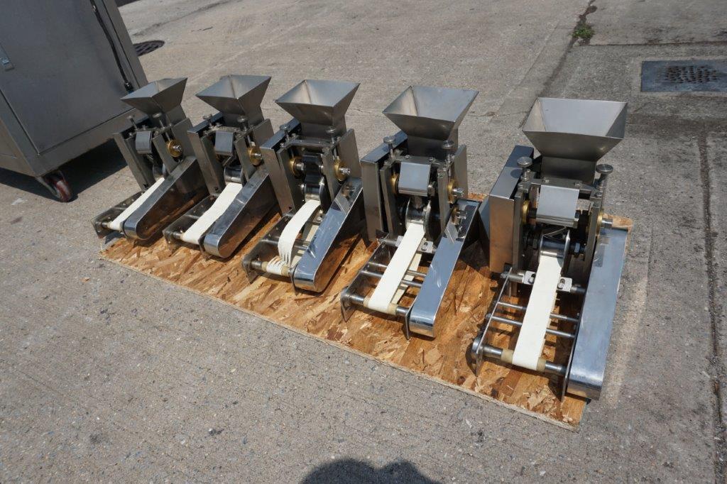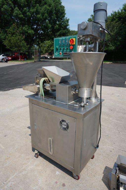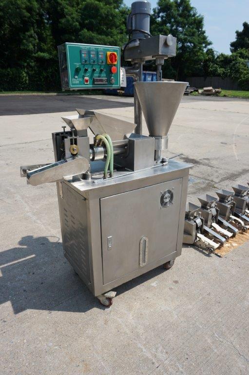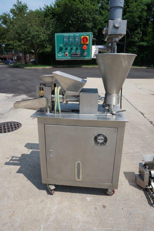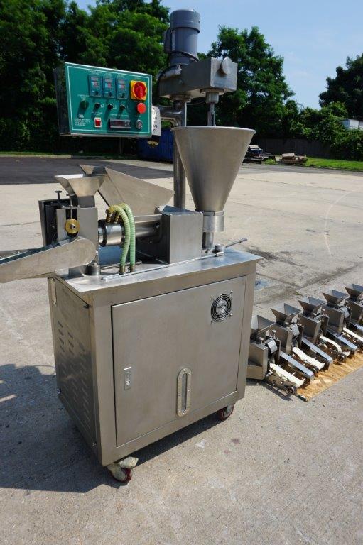 1 – Used Hundred Machinery Stainless Steel Multi-Purpose Forming Machine. On casters for portability, machine is capable of producing Samosa, Pierogi, Patties, Empanada, Ravioli, Curry Puff, Tortellini, Finger Roll, Dumpling, Mini Egg Roll, Noodle, Pasta, Apple Pie, Gugia, Maccheroni and much more. Production capacity between 50 and 150 pieces per minute. Electrical specifications 3 phase, 220 Volt. (Stock #8525C)