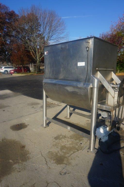 1-Used Lee 300 Gallon Stainless Steel Jacketed Horizontal Paddle Blender, S/N B2304-A.  Interior dimensions approx. 36 in. wide X 48 in. long X 46 in. deep.  Mixer jacketed for 90 PSI @ 332 degrees F, National Board # 3860, Code Stamped.  Last used in food processing.  Equipped with bottom discharge.  Mounted on stainless steel legs.  (Stock #8473E)