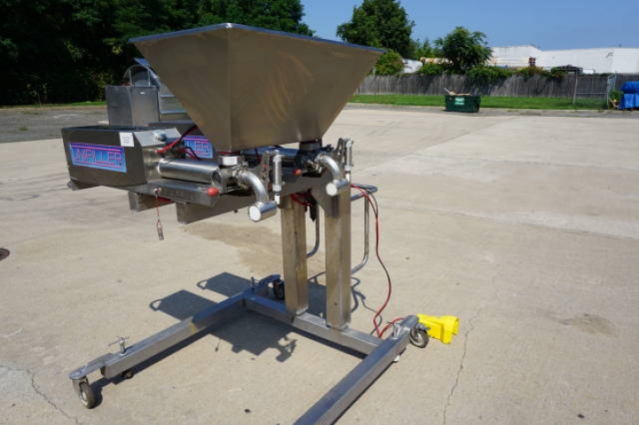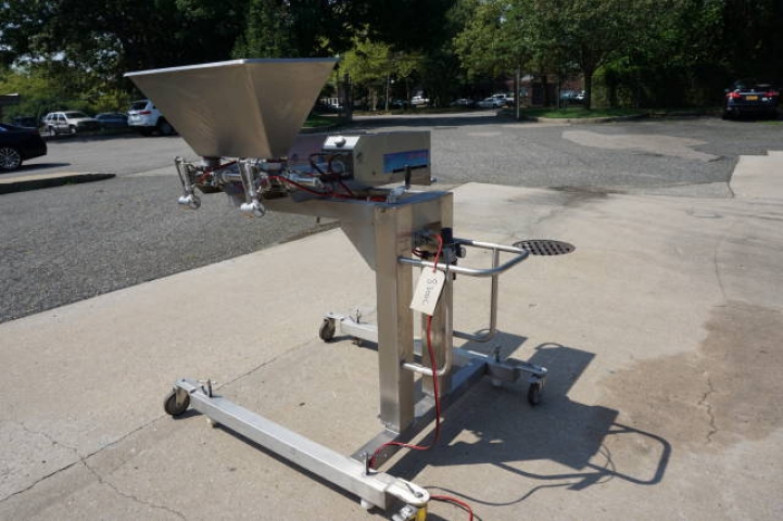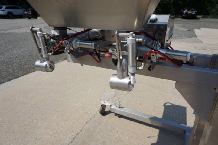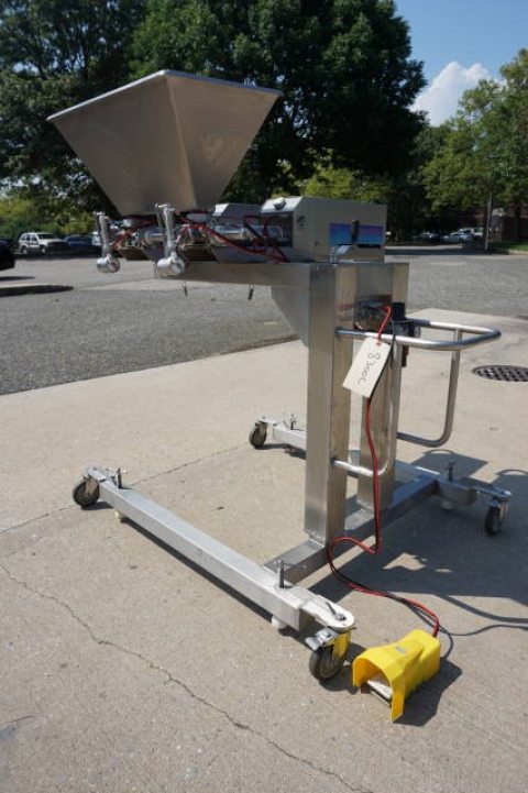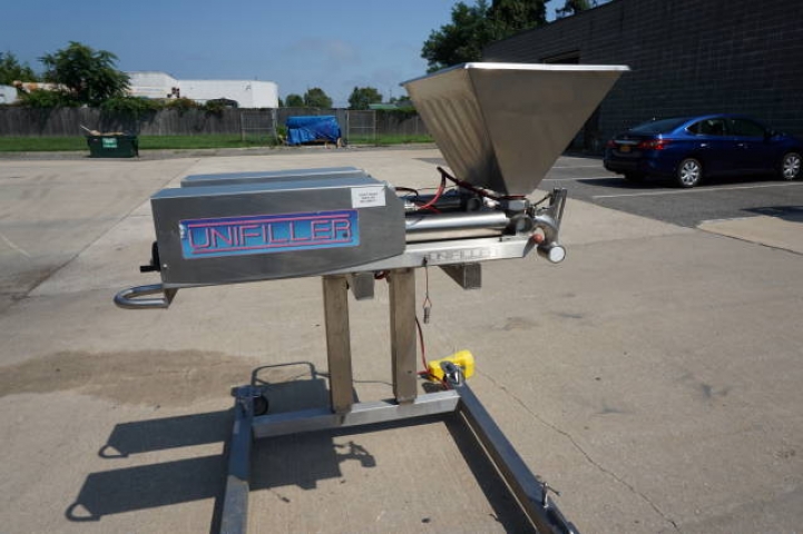 1-Used Unifiller Dual Head Stainless Steel Air Operated Depositor/Piston Filler, S/N DUPR-8101. Mounted on Stainless steel portable base with casters, this adjustable depositor has filling cylinders measuring approx. 2-7/8 In. diameter X 12 In. long. With variable speed control, machine has top- mounted 17 In. X 30 In. stainless steel product hopper. (Stock #8300C)