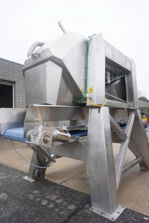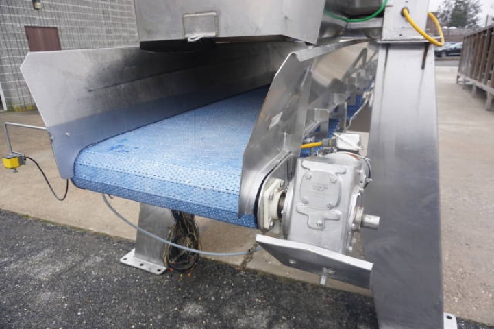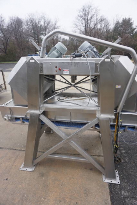1-Pre-Owned Freshline Two-Drum Stainless Steel Sorter, S/N 03081006. Last used in potato processing manufacturing, Sorter mounted on stainless steel base and has two (2) top mounted 10 HP drive motors. Equipped with approx. 25 in. wide plastic take away belt separately driven by 2 HP 3/60/208-230-460 volt stainless steel motor. (Stock # 8277C)