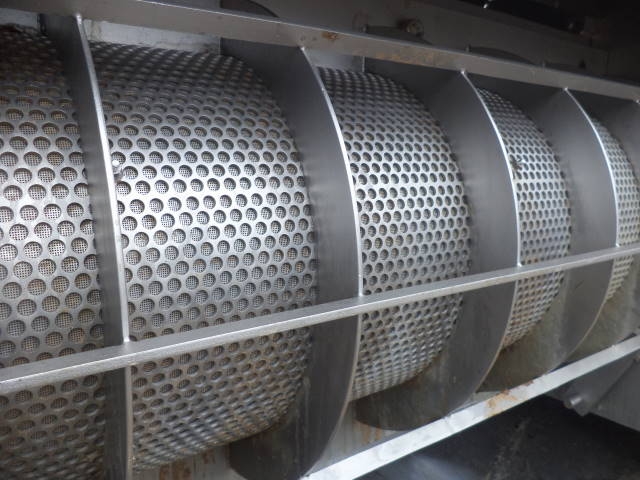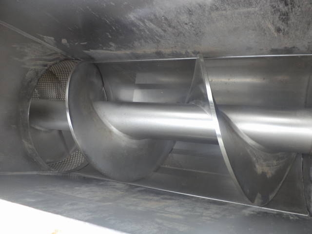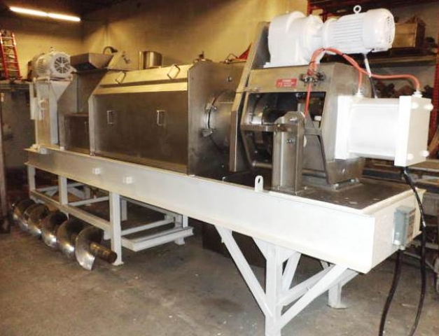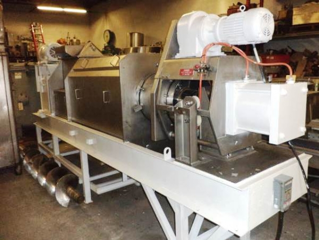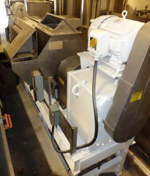 1-Used Hosokawa Bepex Model RSP-16-K2 Dewatering Screw Press, Serial number 2004025024. With stainless steel contact parts, press has approximately 16 in. diameter screw and was last running raspberry seeds, strawberries and apples. Used heavily in the dewatering industry, press is equipped with 30HP 3/60/460 volt motor for screw and 5HP 3/60/230-460 volt accessory motor. Overall length approx. 18 ft. long and screw length (not including shaft) approx. 7 ft long. Screw length, including shaft is approx. 11 ft. long. Supplied with spare screw. (Stock #7974)