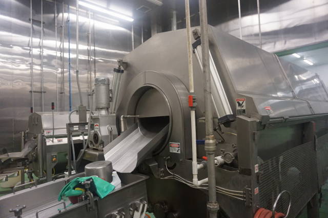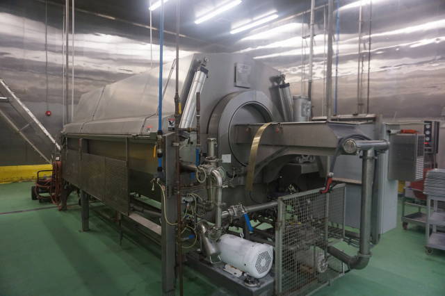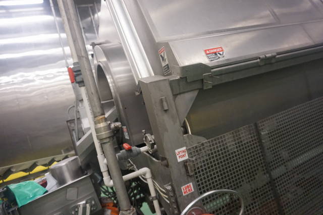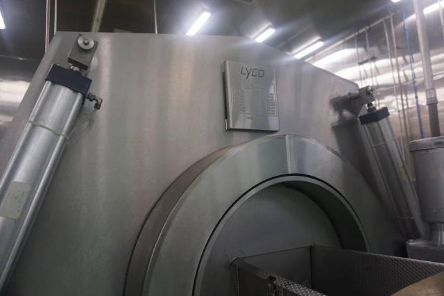 1-Used Lyco Stainless Steel Rotary Drum Cooker/Cooler. Last used in the vegetable industry, machine has approximately 60 In. diameter drum and measures approximately 16 Ft. long. The cook zone blanches or cooks gently agitating the product as it passes through the machine. Product then transfers to the cool zone prior to discharge from machine. (Stock #L1337)