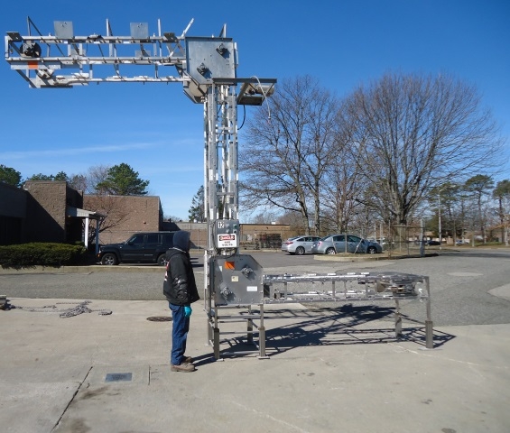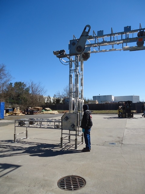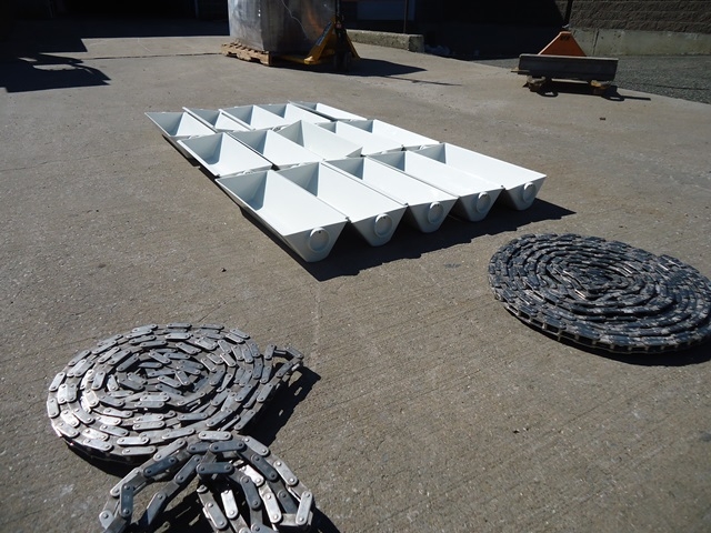 1-Used Conveyor Technology Approx. 14 ft. Discharge Height, Stainless Steel Bucket Elevator. Last used in cheese production, elevator has plastic buckets, each measuring approx. 24 in. long x 8 in. wide. Presently equipped with approx. 14 ft. discharge height, infeed section is approx. 128 in. long, top “reach” section is approx. 114 in. long. Equipped with 1 HP 3/60/230-460 volt wash down motor. (Stock #8065D)