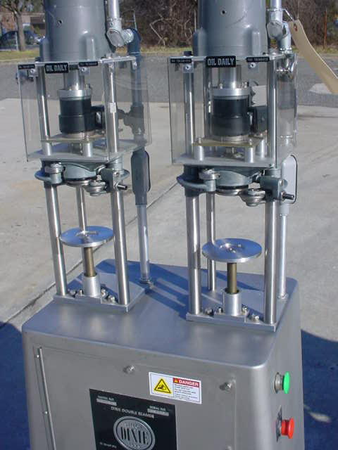 1-USED DIXIE MODEL 25D-TWIN AL DOUBLE HEAD CAN SEAMER, SERIAL NO. 05846/05847. CAPABLE OF UP TO 30 CANS PER MINUTE. THIS SEMI-AUTOMATIC CAN SEAMER HAS AIR LIFT TO SIMPLIFY OPERATION. CAPABLE OF SEAMING CANS UP TO 4¼" DIAMETER AND UP TO 7" IN HEIGHT. ELECTRIC SPECIFICATIONS FOR BOTH MOTORS, SINGLE PHASE, 60 CYCLE 110/115 VOLT.
