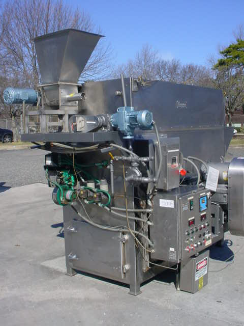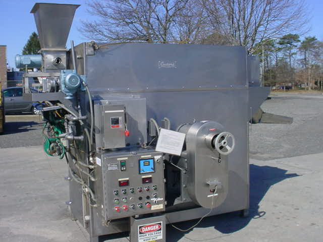 1-USED CRETORS MODEL FT-650 “FLO-THRU” PEANUT ROASTER/CORN POPPER, S/N 93104684. WITH STAINLESS STEEL CABINETRY, THIS NATURAL GAS ROASTER/POPPER HAS MAIN CONTROL PANEL WITH DIGITAL TEMPERATURE READ OUT, AS WELL AS CONTROLS AND GAUGES FOR BLOWER, DRUM, ETC. WITH ECLIPSE COMBUSTION “VERI-FLAME” CONTROLLER, MACHINE HAS 300,000 BTUs PER HOUR RATING. ELECTRIC SPECIFICATIONS ARE BOTH 3 PHASE, 60 CYCLE, 230 VOLT, AS WELL AS SINGLE PHASE, 60 CYCLE, 120 VOLT.