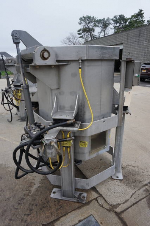 1-Used HMI Heinzen Model SD300 Approx. 300 Lb. Stainless Steel Centrifugal Vegetable Spin Dryer, serial number 17736-1. Dryer measures approx. 40 In. diameter and is equipped with 36 In. wide X 30 In. deep stainless steel perforated basket.  With stainless steel pushbutton starter, machine has hinged automatic power assisted stainless steel lid.  Suitable for de-watering leafy or pre-cut produce including fresh cut lettuce, onions, shredded carrots, etc. (Stock #8277H)