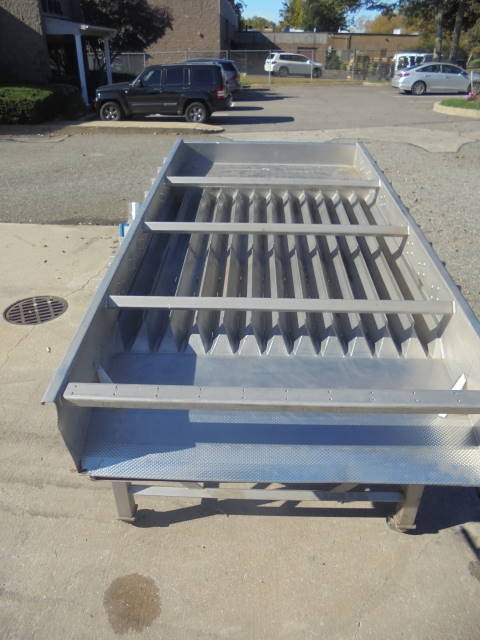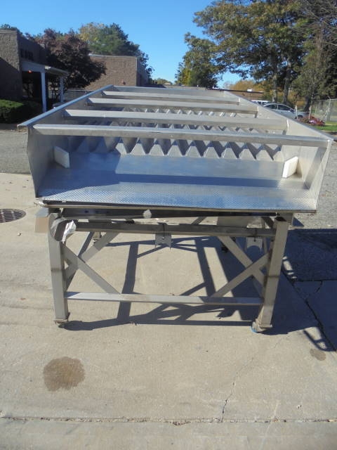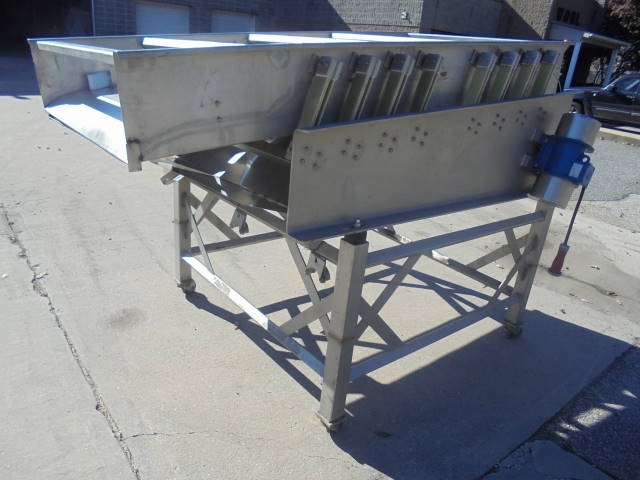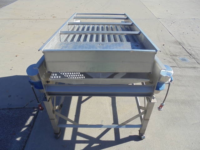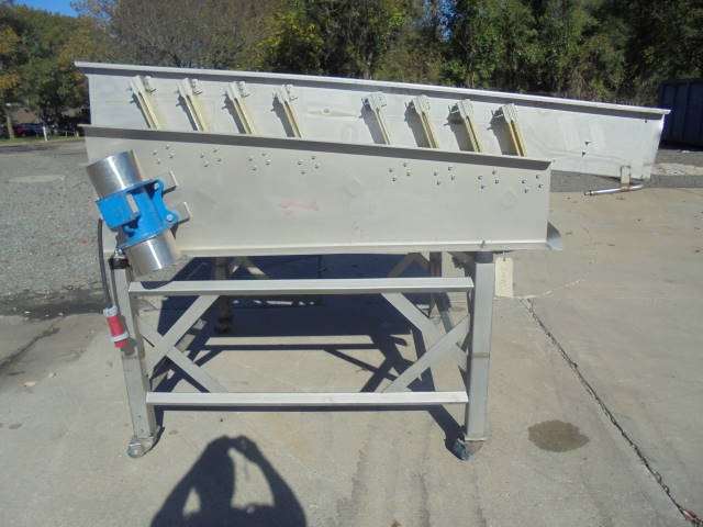 1-Used Stainless Steel Vibratory Conveyor/Shaker/Feeder. Equipped with stainless steel dimpled surfaces, pan measures approx. 46 in. Wide x 96 in. Long. Equipped with two Koolen Breda KC2 shaker units, each .45 kW 3/60/460 volt. (Stock #8149C)