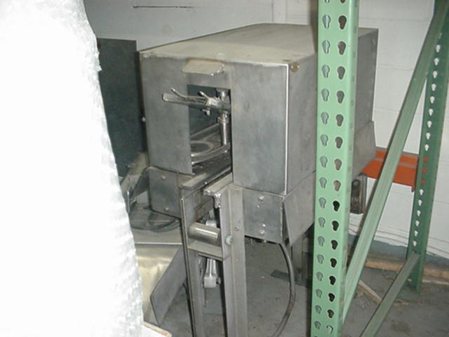 1-Used automatic plastic lid applicating machine. Mounted in stainless steel cabinet, this belt-type, press-on lidder was last used at a major juice canning company for applying plastic lids to orange juice concentrate cans. Belt width approximately 5-1/2″.