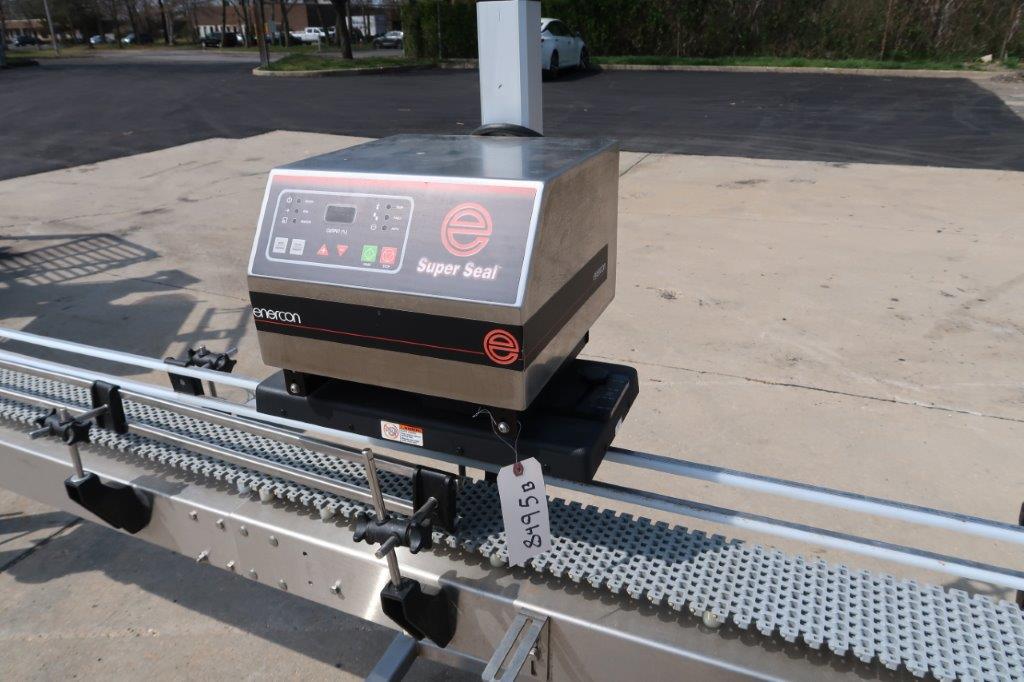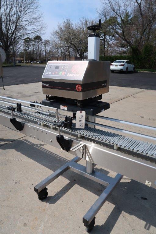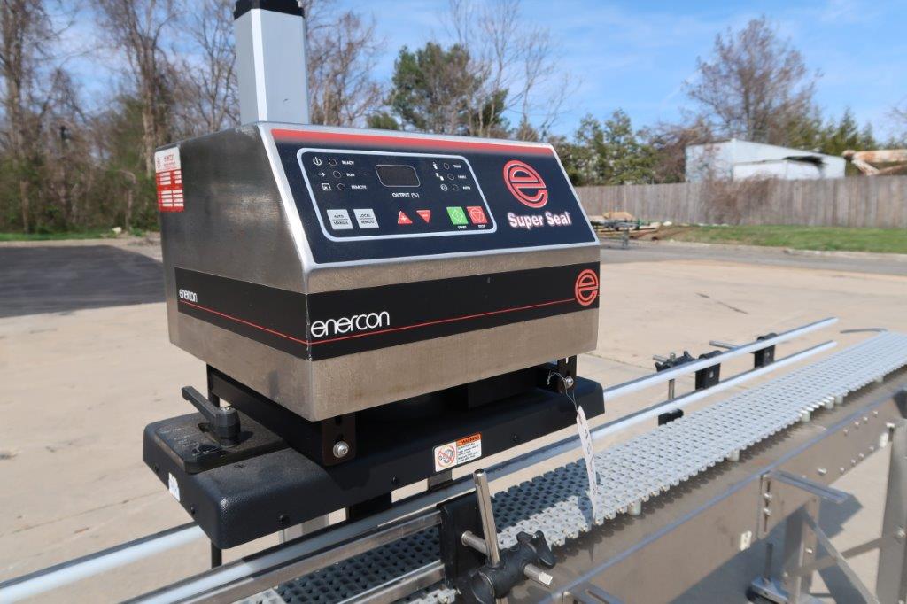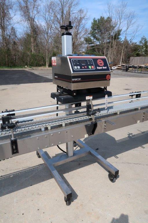 1-Used Enercon “Superseal 75” Stainless Steel Cap Induction Sealing Machine, Model LM5022-215, S/N C25418-01. Mounted on stainless steel portable stand with casters, machine has front mounted digital control pad. Single phase electrics. Can be supplied with Conveyor at additional cost. (Stock #8495B)