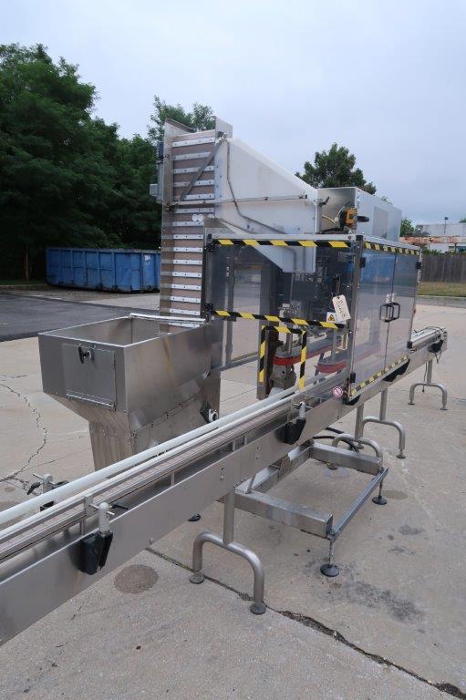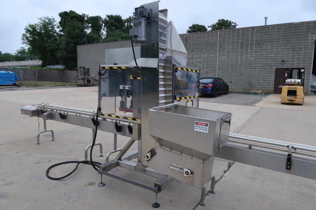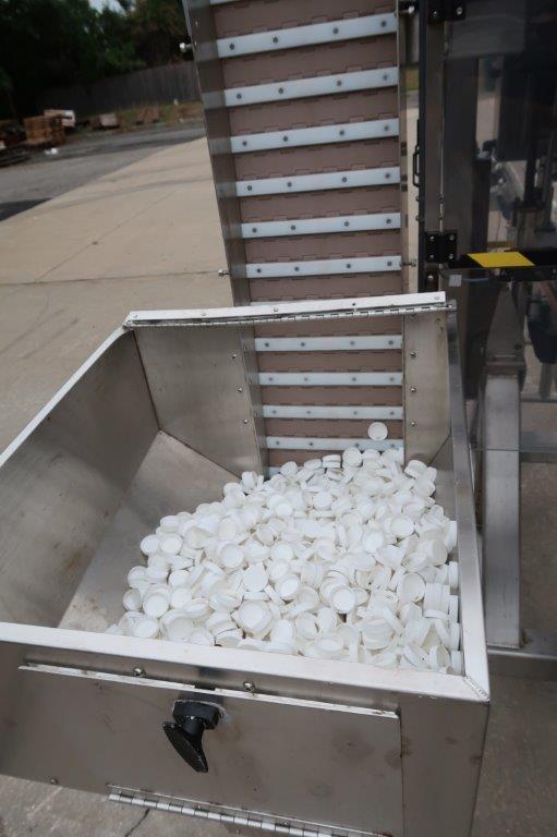 1 – Used Filling Equipment Company Six (6) Spindle Automatic Screw Capping Machine, Serial number 05201235.  Rated up to 120 containers per minute, capper has side mounted cap elevator with hopper for automatic feeding of caps. With container stabilizing belts, capper has side mounted stainless starter box, with Digital controls for variable speed operation. Can be supplied with conveyor at additional cost (Stock # 8666B)