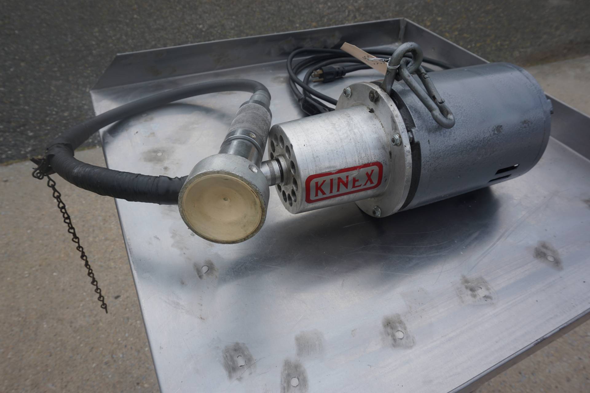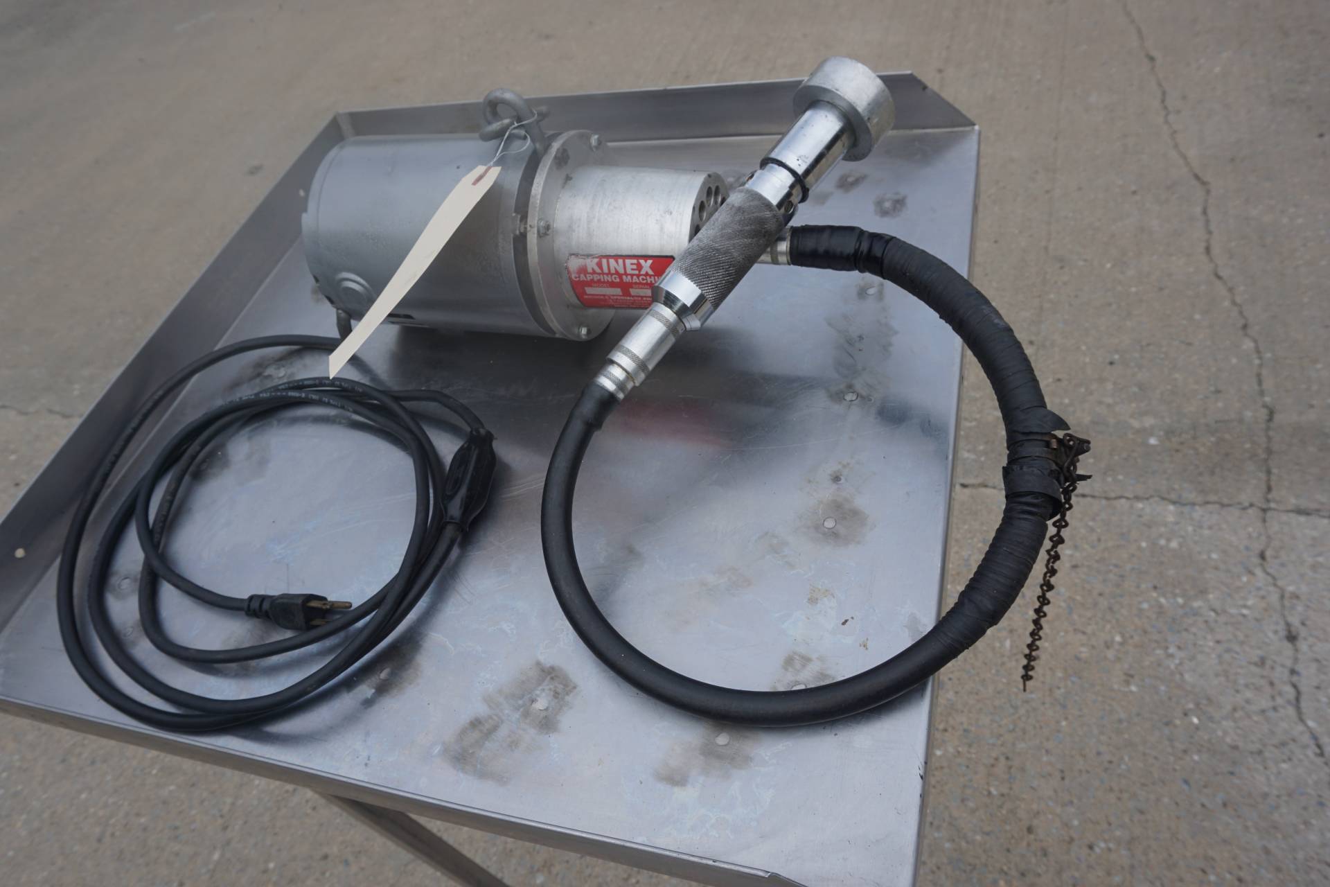 1-Used Kinex Semi-Automatic/Manual Handheld Capping Machine.  Last used in a food operation, machine has single phase electrics. Table shown in photos not included. (Stock #8352K)