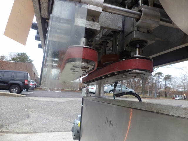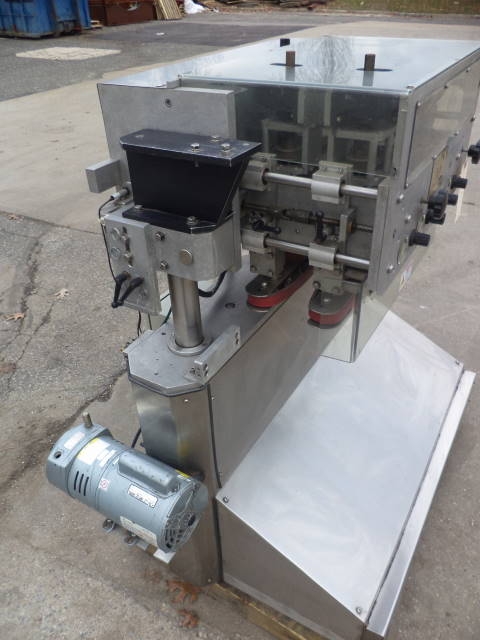 1-Used New England Machinery Six Spindle Cap Tightener/Retorquer Model NEJLC-3, S/N 7449.  This adjustable Cap Tightener/Retorquer has stainless steel shrouding and was last used at pharmaceutical facility.  (Stock #7953LL)