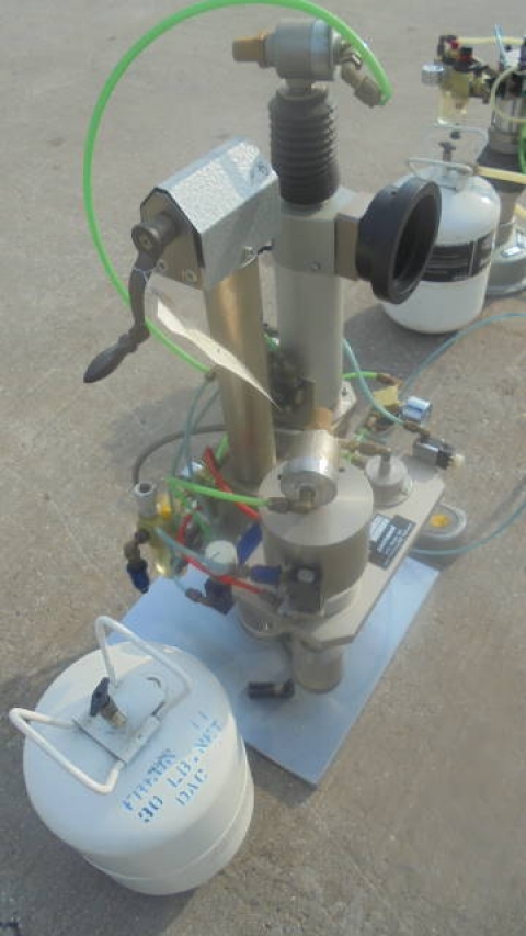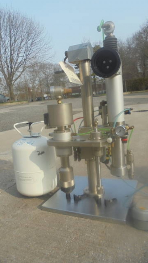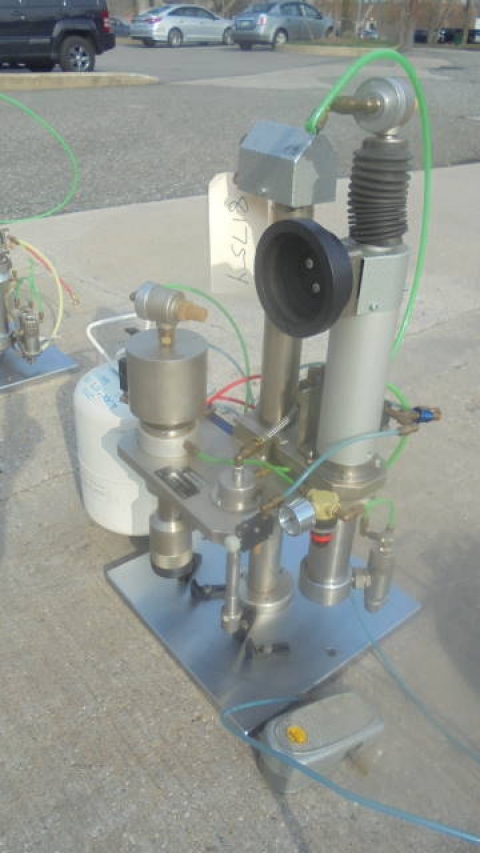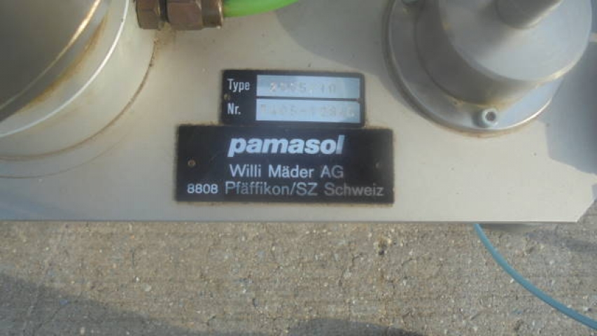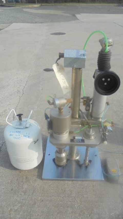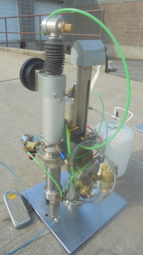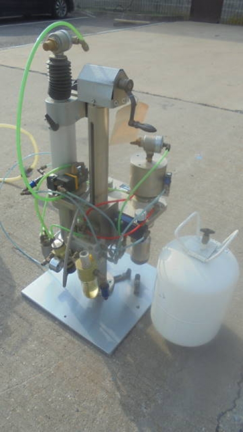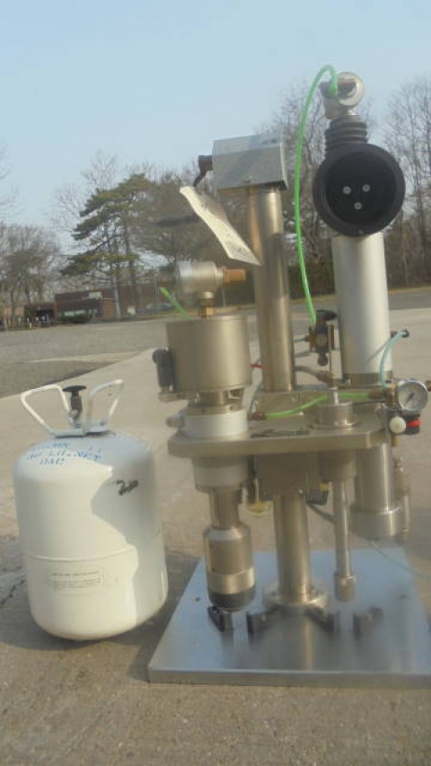 1-Used Pamasol Benchtop Aerosol Combination “Gasser & Crimper”. Type 2005/10. Nr. #7405-12846. Foot Pedal Operation. (Stock #8175Y)