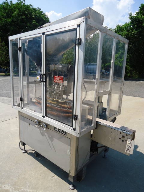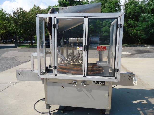 1-Used Resina NRU30 Six Spindle Automatic Screw Capping Machine. Rated up to 150 containers per minute, Capper has stainless steel hopper, cap chute and double tier gripper belts. (STOCK #7812N)