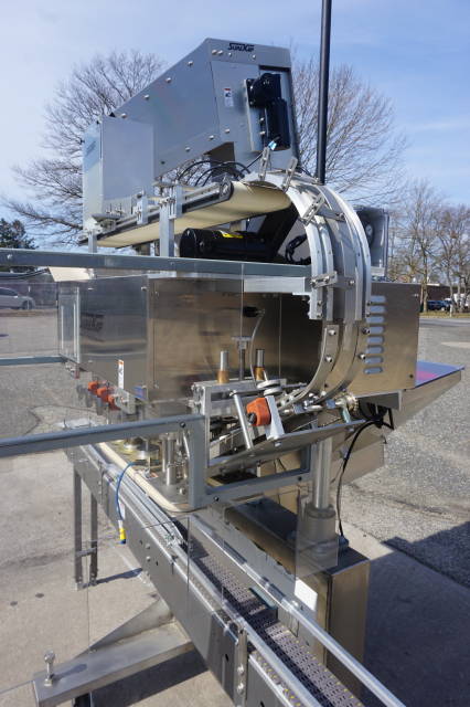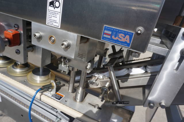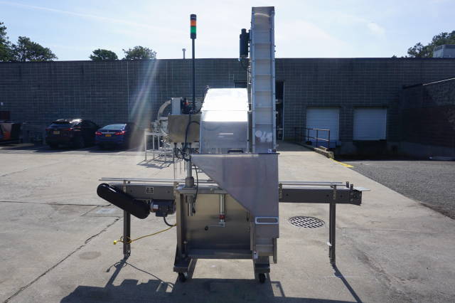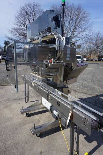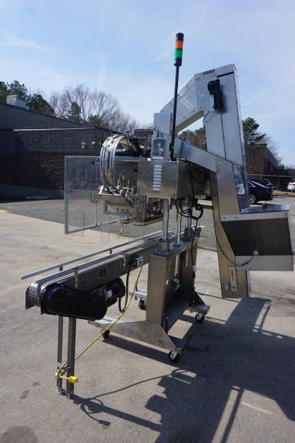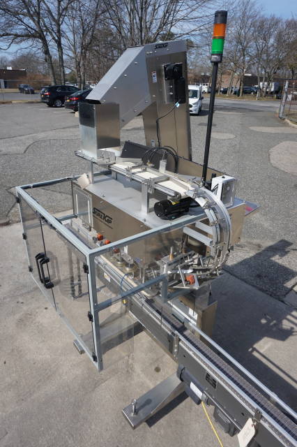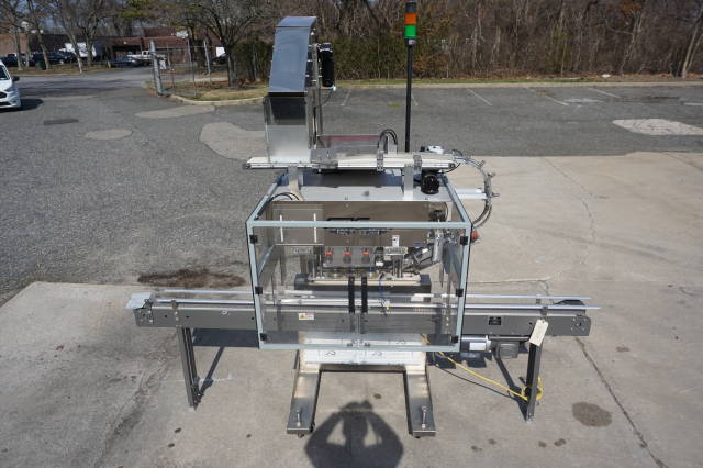 1-Used Surekap Model SK6000-BF6 Inline Fully Automatic Six Spindle Screw Capper, S/N FL19792.  Equipped with high speed Cap Feeder with Floor Level Loading Machine.  On casters for portability   Can be supplied with approx. 4-1/2 in. wide X 10 ft. long Conveyor shown in  photographs. Capper was built with heavy duty drives by Surekap, and has “quick-change” package. Last used in packaging operation at major drug store/pharmacy chain.  (Stock # 8342A)
