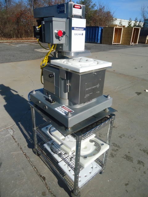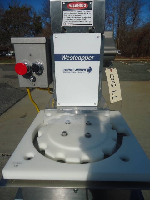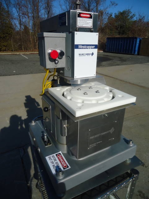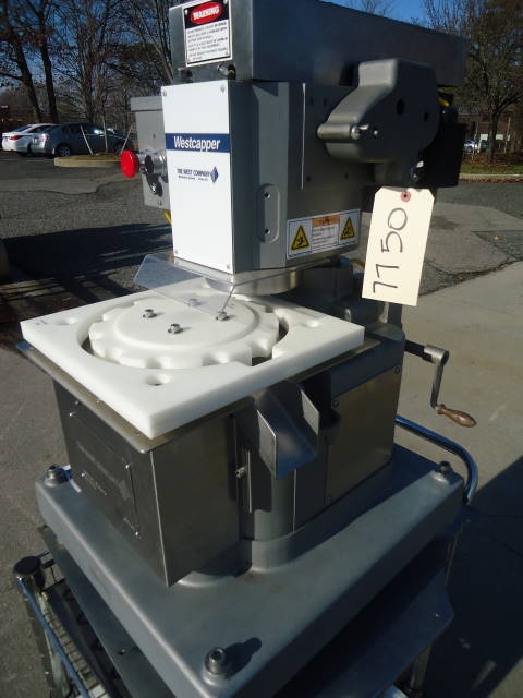 1-Used WestCapper Type PW-200T Pharmaceutical Capping Machine, Machine No. 1107. Driven by 1/3 HP single phase, 60 cycle, 115-230 volt electric motor. Equipped with some spare parts, machine appears in excellent condition. This Vial Capper uses rollers to seal the vials tight. Portable cart shown in photographs not included in the price. (Stock #7750)