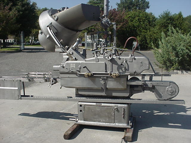 1-Used white cap “vapor vacuum” automatic capping machine, model veljg, serial #vb-378lhs. Last running 63mm diameter twist off cap. With 4-1/2″ wide stainless steel tabletop conveyor chain, approx. 11′ long. With white cap model 6r17a cap hopper.