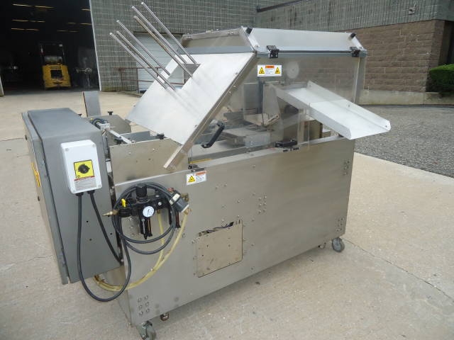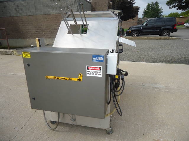 1-Used Econocorp “Econoseal” Model E-2000 Horizontal Cartoner, Model 7148, S/N 7575. With stainless steel frame, machine is on casters for portability and has hot glue sealing. Rated up to 25 cartons per minute, cartoner has electrical specifications single phase, 60 cycle, 220 Volt. (Stock # 8214)