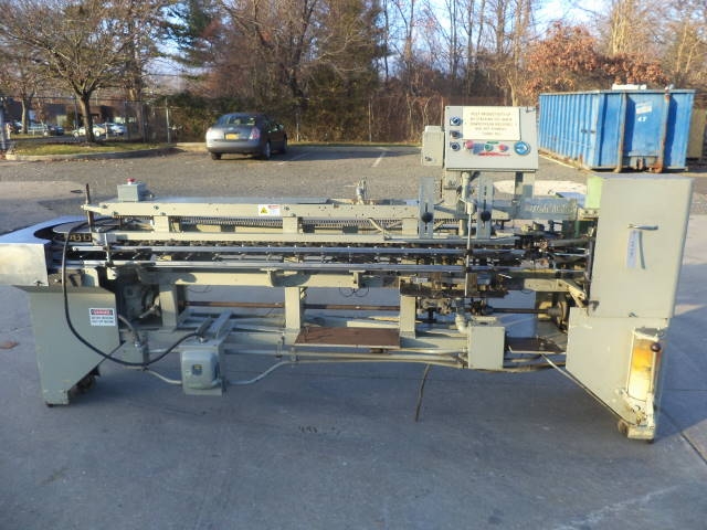 1-Used R.A. Jones Model IMV Intermittent Motion Vertical Cartoner, S/N IMV-280. Rated up to 60 cartons per minute, machine has approx. 5 in. centers and 3/60/480 volt electrics. With approx. 6 ft. long Operator’s Manual Loading Section. Has overall length of approx. 124 in. Can be equipped with parts for both straight tuck and reverse tuck cartons. Equipped with Gast 1/3 HP vacuum pump. (Stock #7939C)