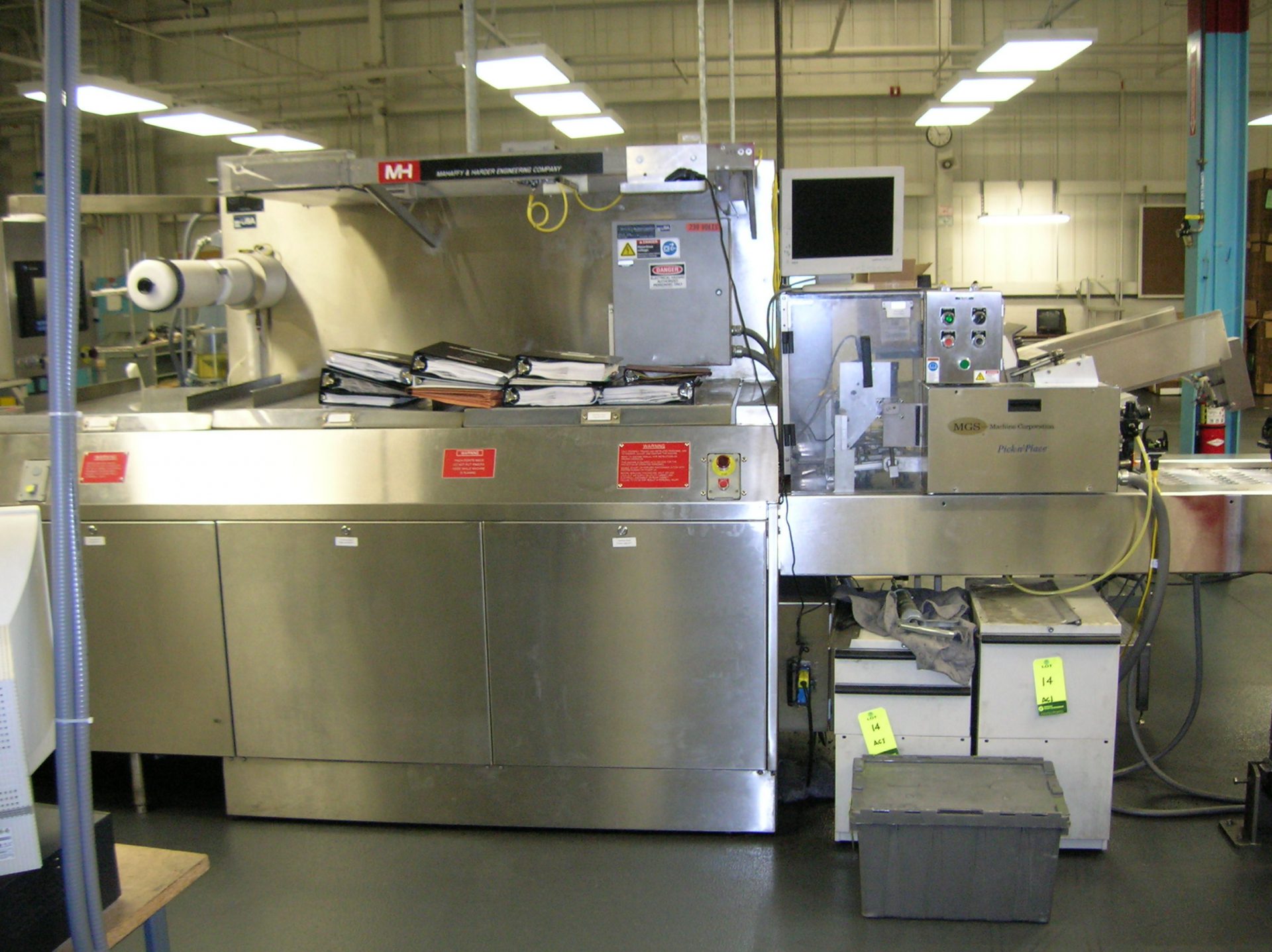 1-Used mahaffey + harder “sureflow” 8000 form fill seal packaging machine. Last used for packaging “reach” toothbrushes. Features include radiant heat, pre-heat station, plug forming station, extended load bay, cross web labeler, vision system, bag card feeder, sealing station, die cutting and loading and unloading stations. Last running 70,000 units per 8 hour shift. With touch screen control and operating manuals. Machine has numerous features. (stock # l1150)