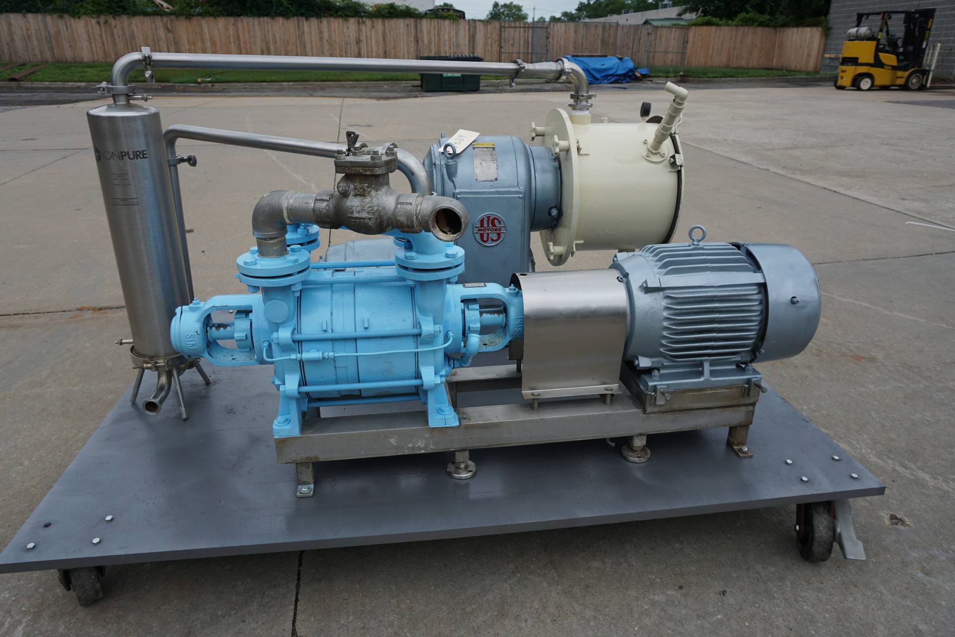1-Used Cornell Machine Company Versator Model D16 Deaerator. Driven by Reliance 7.5 HP Variable Speed Drive, machine is mounted on portable base with casters and equipped with SIHI 20HP Liquid Ring Vacuum pump and Ionpure stainless steel filter. (Stock# 8384)