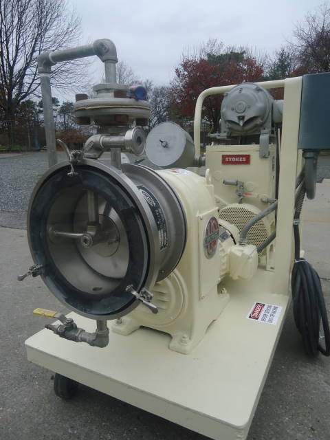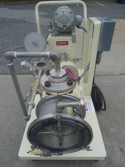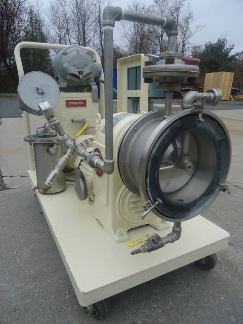 1-USED CORNELL MACHINE COMPANY VERSATOR MODEL D8, S/N 6027. CONSTRUCTED OF STAINLESS STEEL, UNIT DRIVEN BY 2 HP 3/60/220-440 VOLT EXPLOSION PROOF VARIABLE SPEED DRIVE. ON BASE WITH CASTERS FOR PORTABILITY, UNIT COMES EQUIPED WITH STOKES MODEL 148 H-9 VACUUM PUMP DRIVEN BY 1.5 HP 3/ 60/208-220-440 VOLT MOTOR. EQUIPPED WITH TWO (2) STARTER BOXES, ONE (1) FOR VERSATOR AND ONE (1) FOR VACUUM PUMP. (STOCK # 7531F)