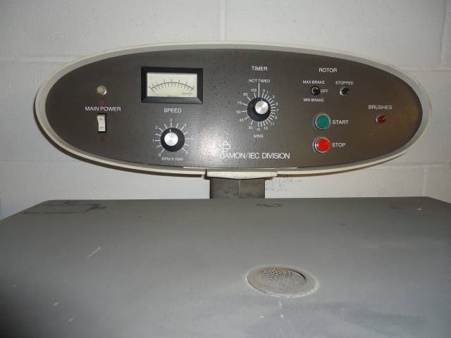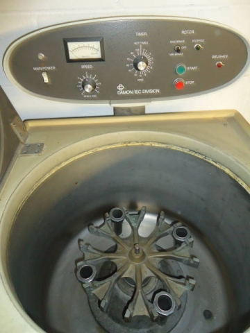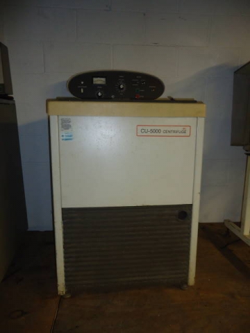 1-USED DAMON/IEC DIVISION MODEL CU-5000 CENTRIFUGE. ACCOMMODATES BROAD RANGE OF ACCESSORIES, FOR SAMPLES FROM MICRO SIZE TO 1,000ML BOTTLES. PROGRAMMED OPERATION, WITH TIMER AND TUBE CARRIER.