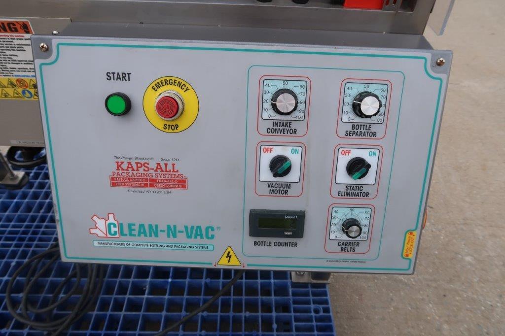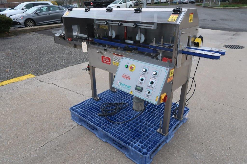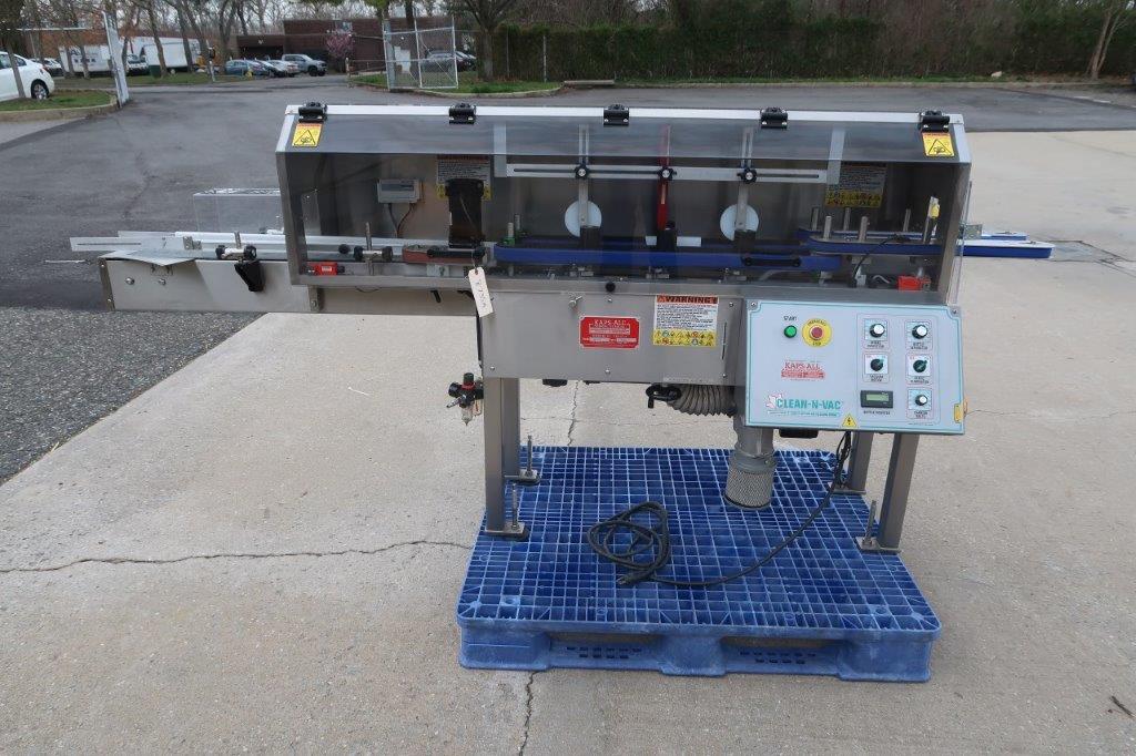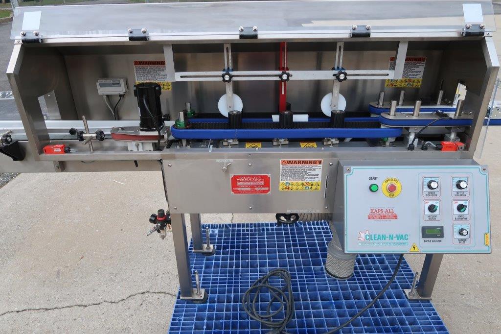 1 – Used Kaps-All “Clean-N-Vac” Conveyorized Bottle Cleaner, Model AC-35, s/n 8391. With self-contained blower, machine has infeed section with 4-1/2 In. wide plastic tabletop chain. With front mounted control panel with variable speed feature (Stock # 8735A)