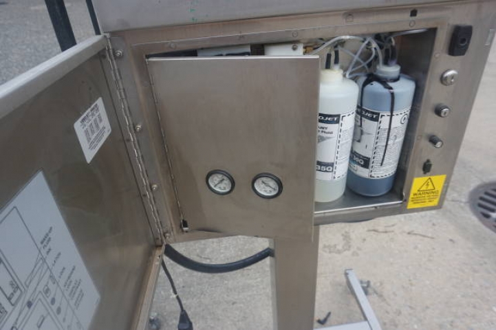 1-Used Videojet Model Excel 170i-AF Inkjet Coder, S/N 010920007WD. On stainless steel portable stand with casters, unit has electrical specifications single phase, 50-60 cycle, 100-240 Volts. (Stock #8296G)