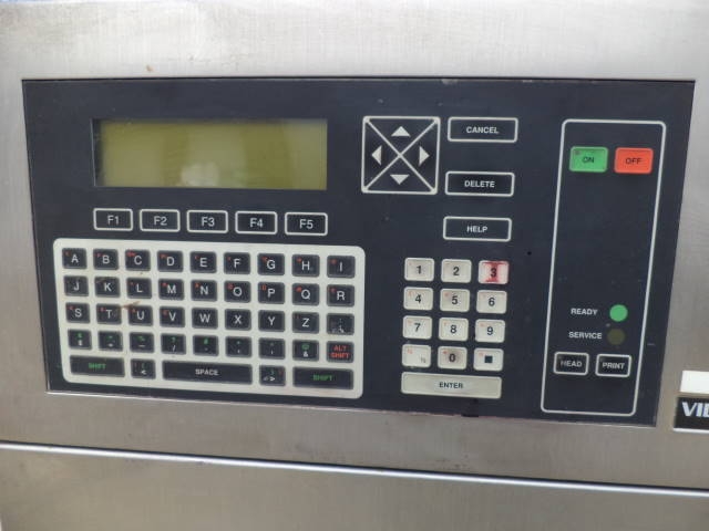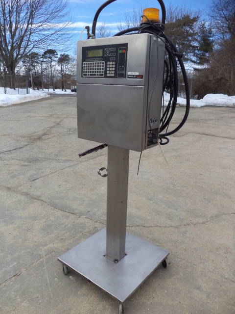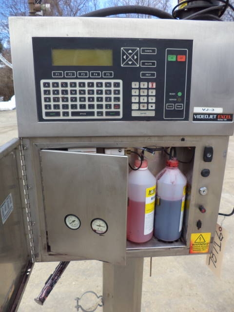 1-Used Videojet Excel Series 100 Inkjet printer, Serial Number E94J10098. Electrical specifications single phase, 50/60 cycle 150 Volt. On casters for portability. (Stock #7871G)