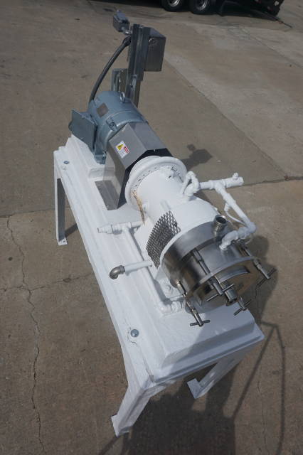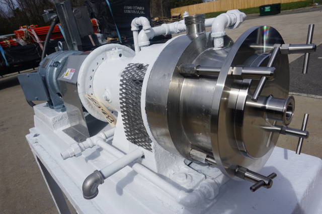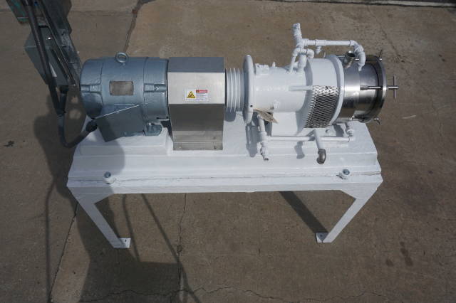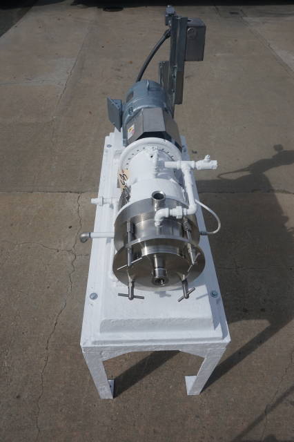1-Used Chemicolloid Industries Charlotte 20 HP Inline Horizontal Colloid Mill.  Rated  300 gallons per hour up to 600 gallons per hour.  Machine is mounted on base and driven by 20HP elecric motor.  Last used in the food industry.  (Stock # 8353)