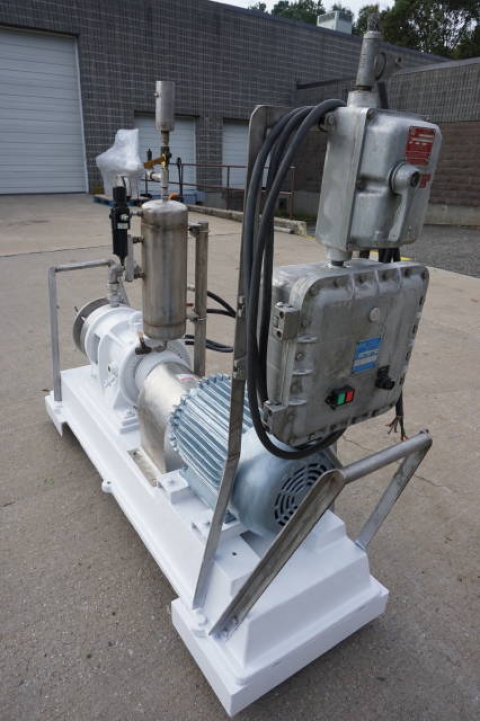 1-Used Chemicolloid Laboratories Charlotte Model SD20 Stainless Steel Inline Horizontal Colloid Mill, S/N 1053. Mounted on portable base with casters, this colloid mill is driven by 20 HP 3/60/230-460 volt Explosion Proof motor. Equipped with Explosion Proof Starter box. (Stock# 8315)